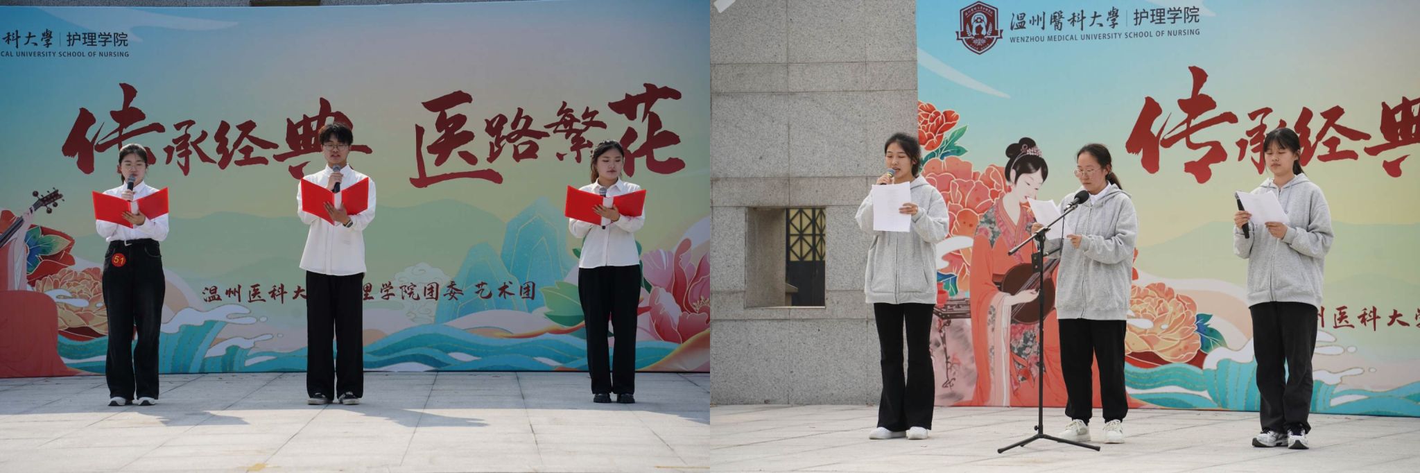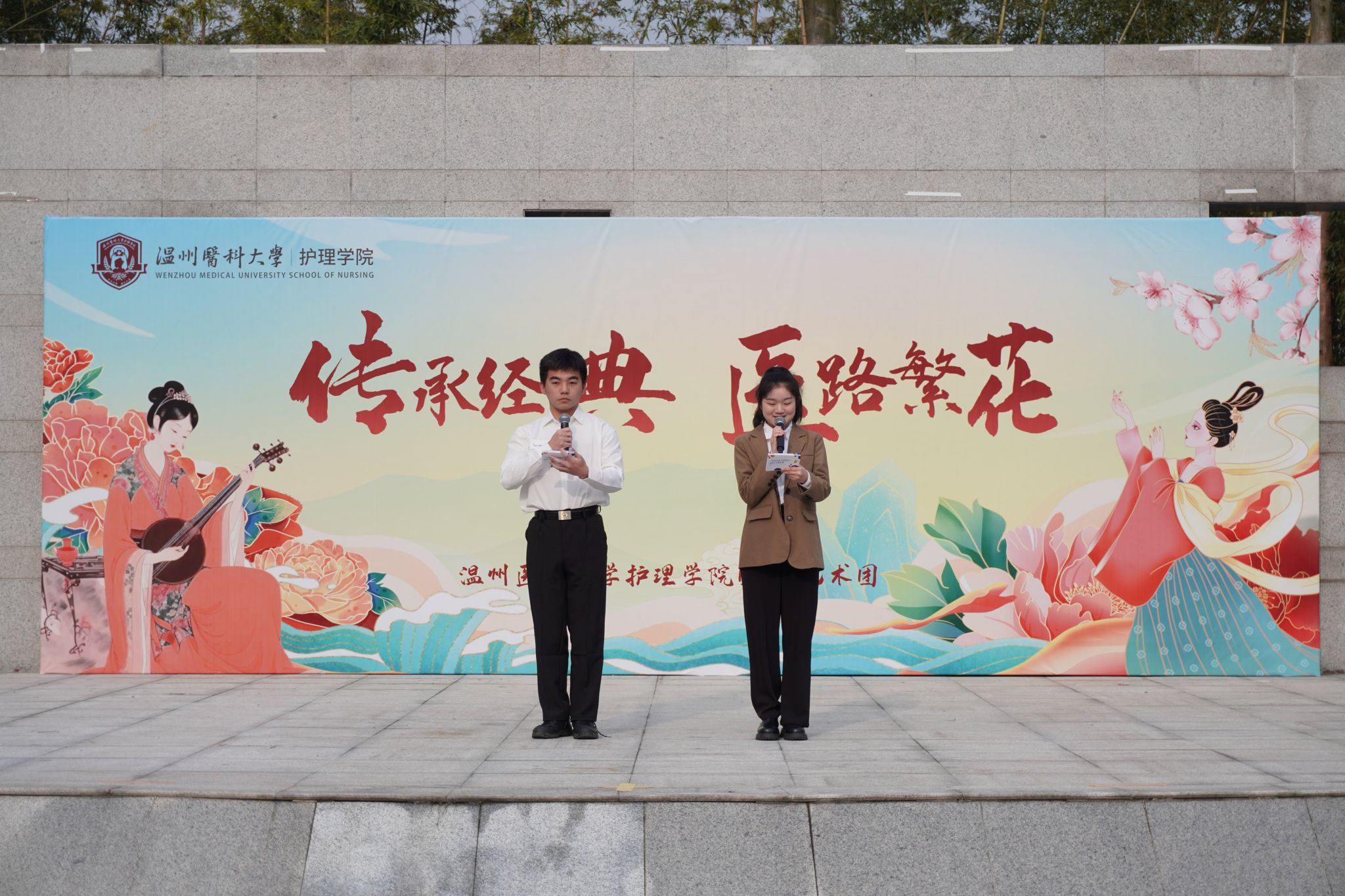 为庆祝中华人民共和国成立75周年,弘扬中华优秀传统文化,培养大学生的爱国主义情感,着力提升护理学生的人文素养。3月23日上午八点,快猫 “传承经典,医路繁花”班团才艺擂台赛在求新楼广场热烈举行。本次活动覆盖2023级全体班级和2022级部分班级,并邀请了2023级新生辅导员和快猫 艺术团指导老师莅临指导。