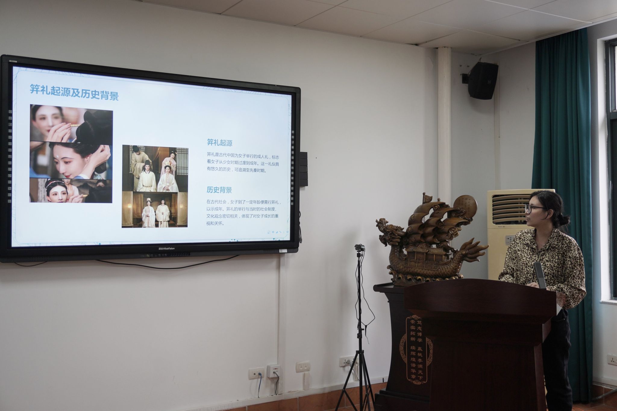 陈晓琳老师分享了《笄礼》,她从笄礼的起源、仪式、服饰、传承等5个方面介绍笄礼这一传统仪式。随着时代的发展笄礼也被赋予了新的含义,这不仅仅是女子成长的象征,更是对传统文化的传承。