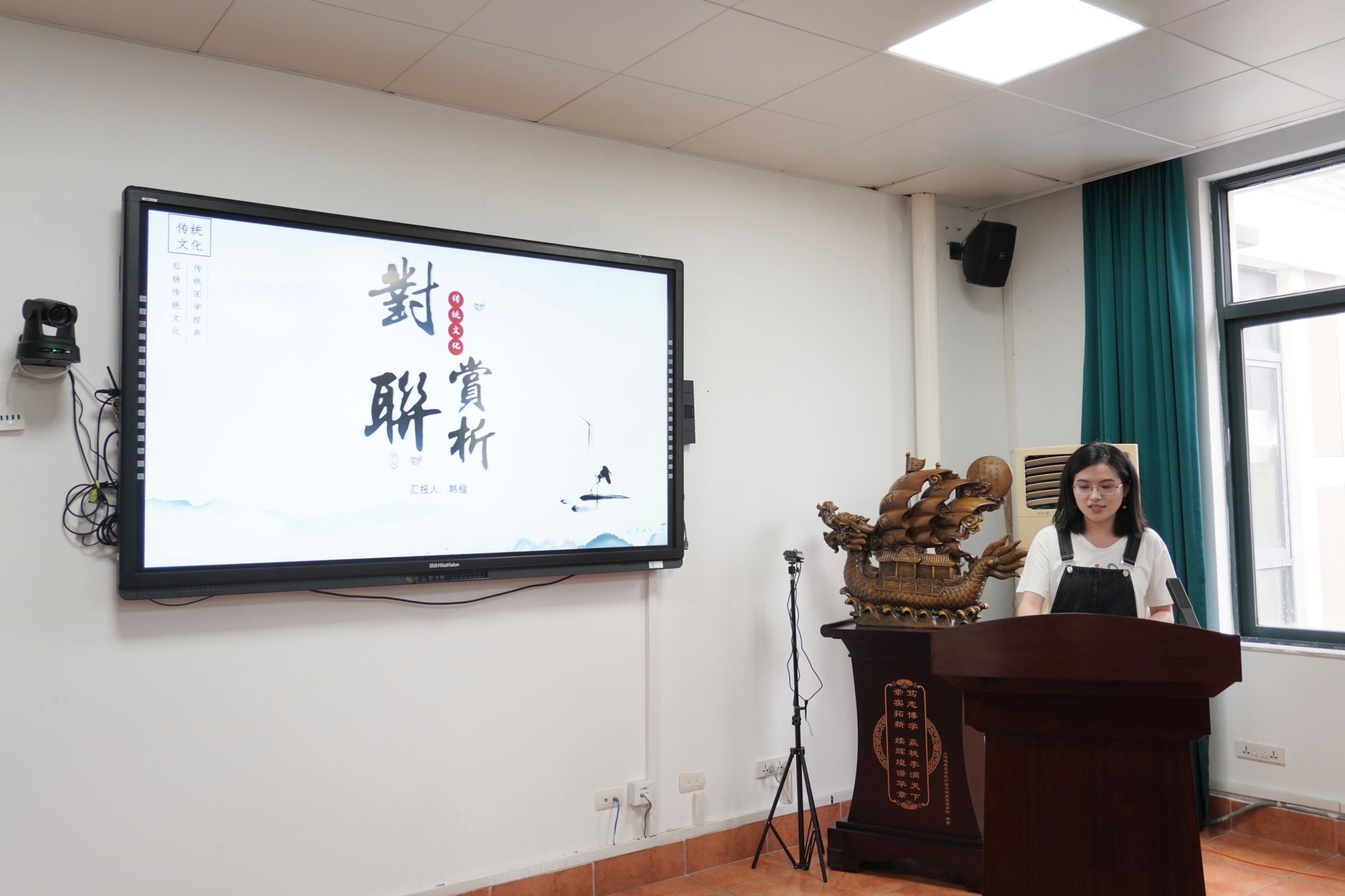 韩楹老师分享了《对联赏析》,她以文学题材、历史地位、特性特质、三个层次展开对联的溯源,让我们了解了对联这种文学题材。韩楹老师借助对联鉴赏让老师们领略到中华文化的独特艺术之美。