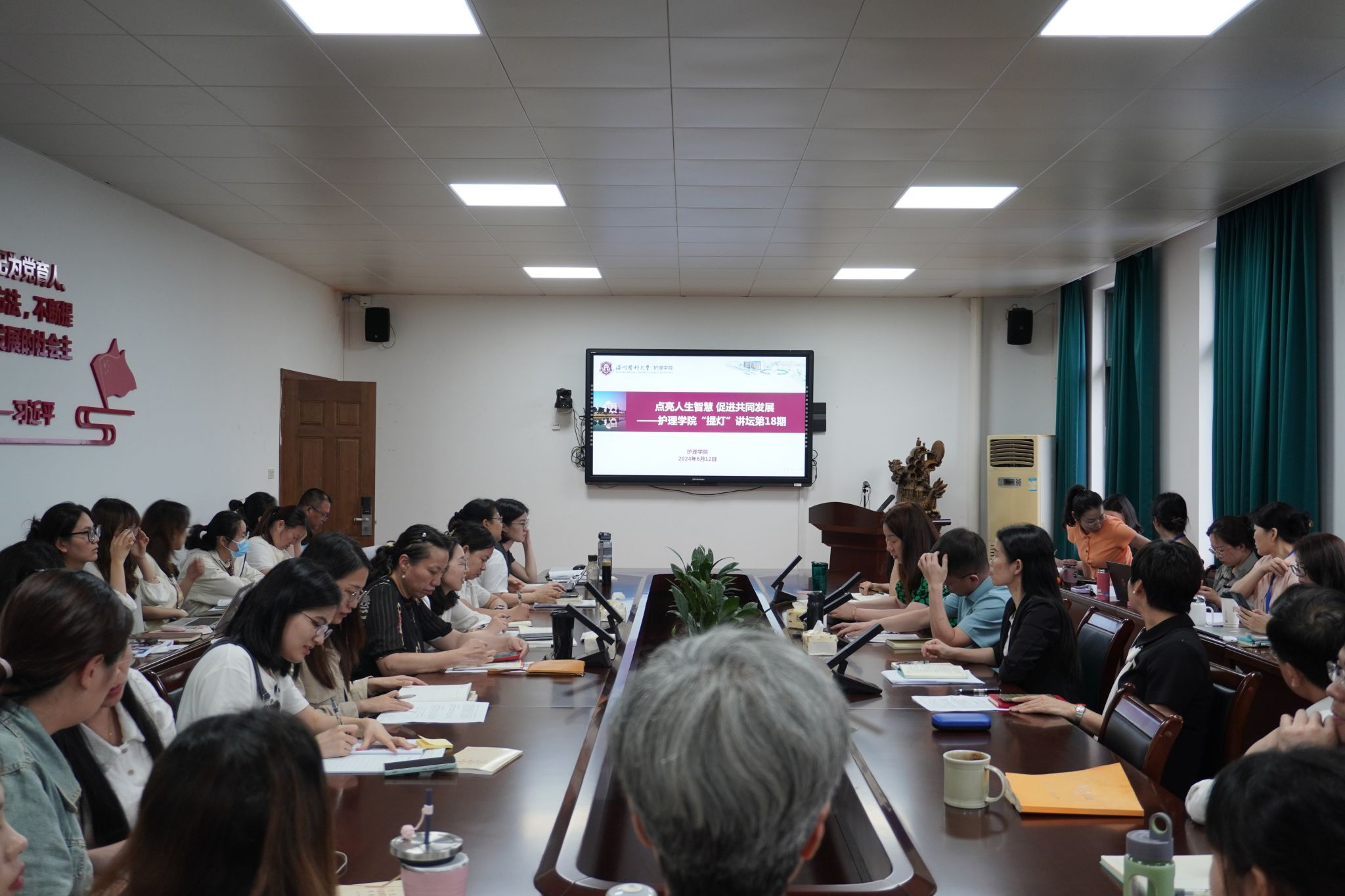 6月12日,快猫 第十八期“提灯”讲坛在7C306会议室开讲。本期讲坛由潘艳、韩楹、陈晓琳3位老师主讲,张迪老师主持,全体教职工参与此次活动。