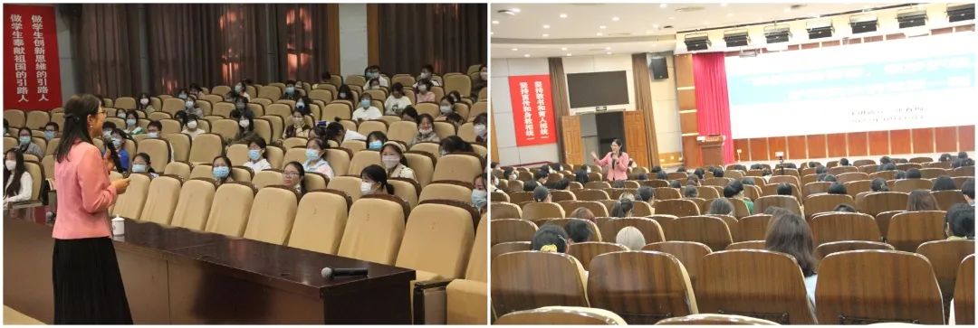 她提到,在这次援沪任务中,各领队领导各医务人员团结协作,运用了四大策略、四大法宝,克服了重重困难与挑战,圆满完成了上级交代的任务,实现了队伍“零”感染,打造了一支有专业、有温度、有情怀、有情趣的专业队伍,获得上海百姓、浙沪两地政府和社会各界的认可,经历非凡,收获满满!在讲完这个故事后,坐席上掌声雷动,同学们都怀着崇敬的眼神看着台前,备受鼓舞,满怀感动。