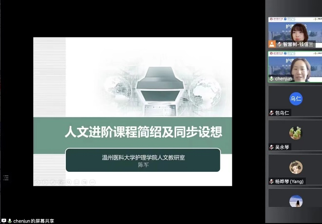 为积极响应教育部高教司虚拟教研室建设和“慕课西行”号召,深入推进信息化教学手段和教学方法改革创新,快猫 与内蒙古民族大学就《护理人文课进阶课》及《护理学导论》课程开展了同步课堂。开课前夕,两校课程负责及主讲教师开展了线上备课,相互介绍了各自课程,并确定同步课堂的内容及实施方案。