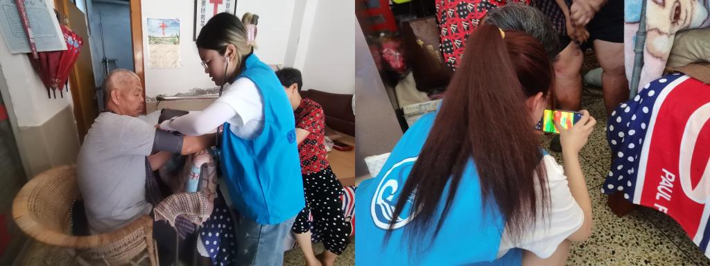 在入户调研的同时,实践团也关注到低保老人对于便捷、上门的医疗服务需求。实践团成员通过入户交谈大致了解到老人的生活情况和健康状况,为全部老人免费测量血糖、血压,还给糖尿病老人进行足部评估。