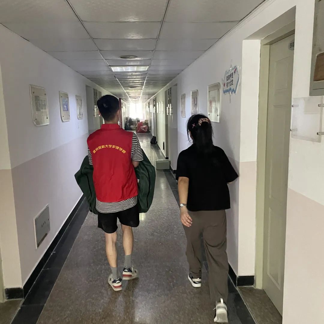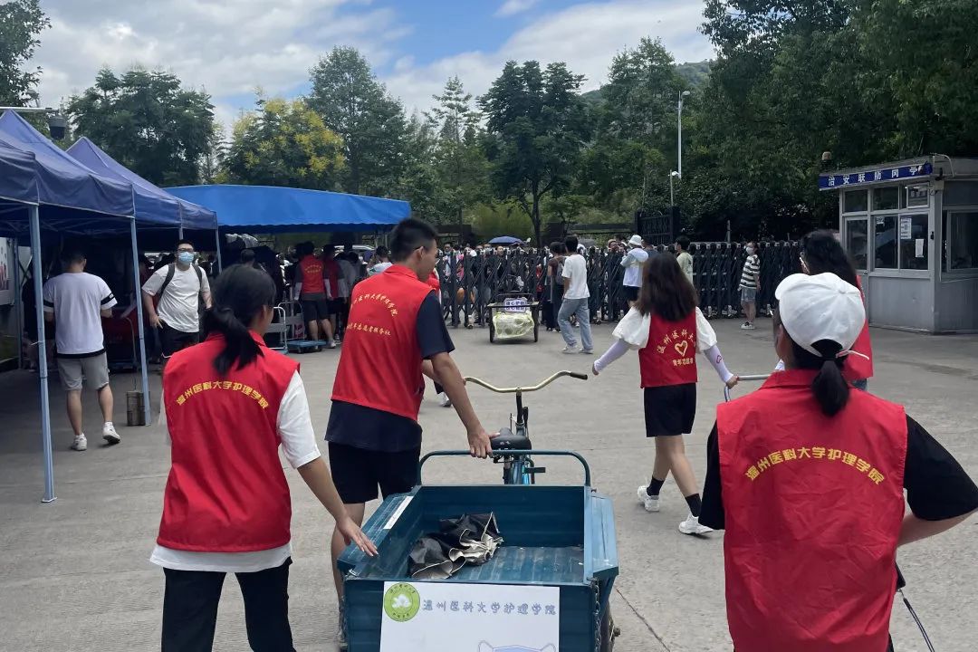 一位已经整理好行李的护理新生说:“虽然家长不能进校,但学院志愿者们洋溢的热情,让我感觉到自己并不是一个人,谢谢你们!”