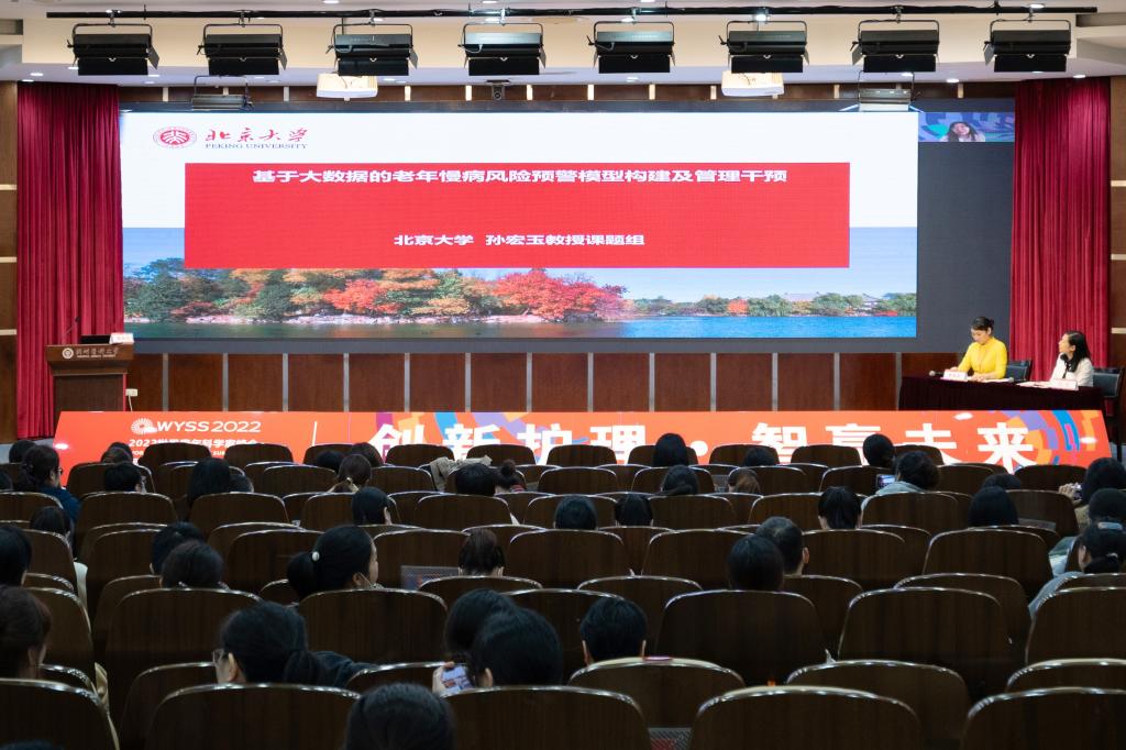 美国护理科学院院士、教育部高等学校护理学专业教学指导委员会秘书长、北京大学快猫 孙宏玉教授作《基于大数据的老年慢病风险预警模型构建及管理干预》和主旨报告。她聚焦大健康理念,围绕社区健康人群、社区慢性病人群、老年人群的需求特点及社区健康管理存在的问题,通过多学科、多中心的共同研究合作,进行老年智能健康检测与管理系统的开发,为运用大数据等信息技术进行护理研究提供了新的思路。