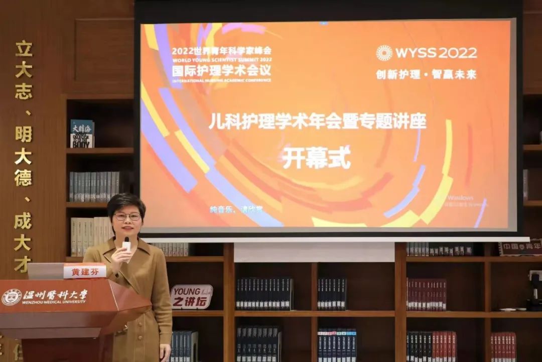温州市护理学会儿科学组组长黄建芬致辞,对会议的顺利召开表示祝贺,向专题讲座的各位专家表达感谢,对参会的护理同仁表示欢迎,并希望与会人员以本次学术会议为契机,相互学习,共同进步,不断提高护理质量。