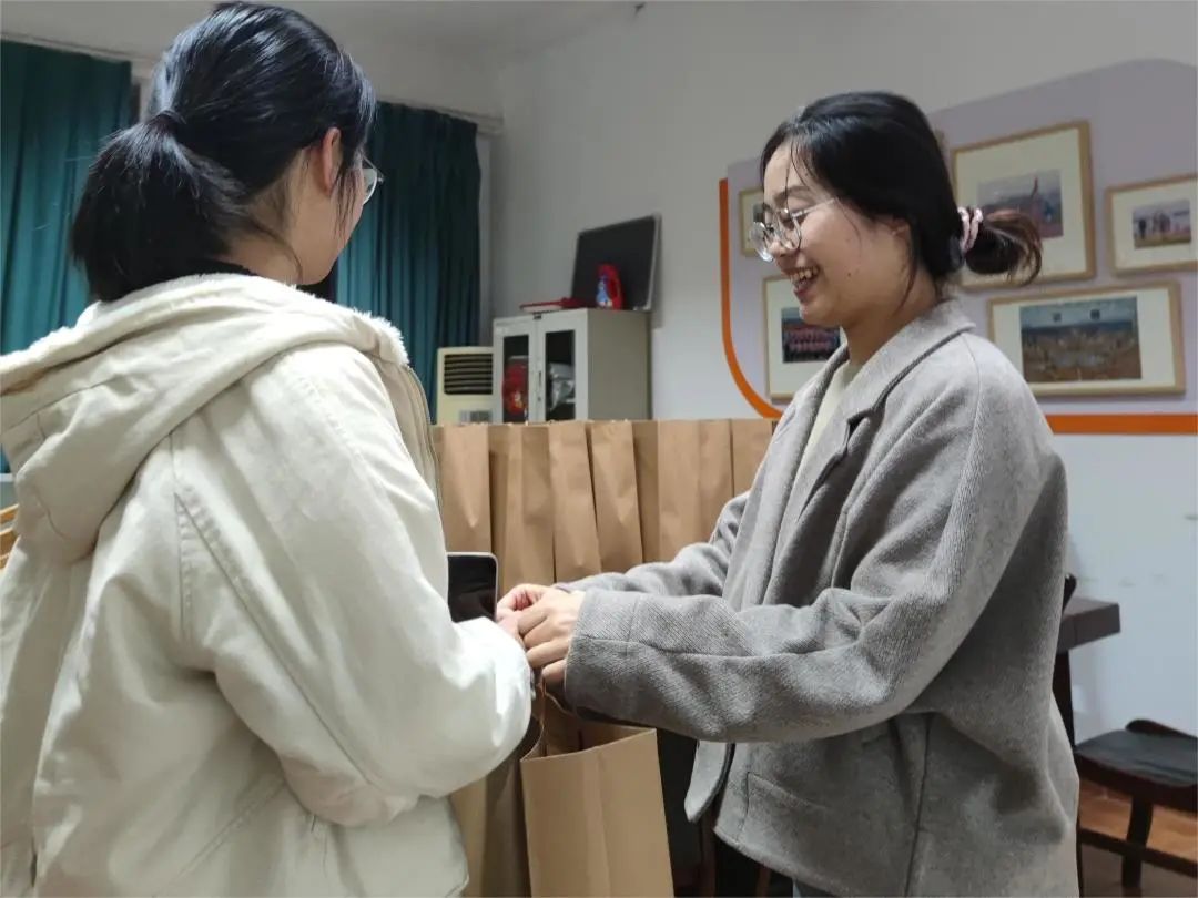 2022级辅导员为94名学生资助对象,精心准备了保温杯、暖手宝、温暖坐垫等小礼物,并附带了加油祝福的小贺卡。前期,辅导员通过走访宿舍、谈心谈话等多种方式,从生活、学习、心理等方面全面了解和摸排各类困难学生的实际需求。同学们收到后,都十分开心,表达了对学校和学院的感谢。