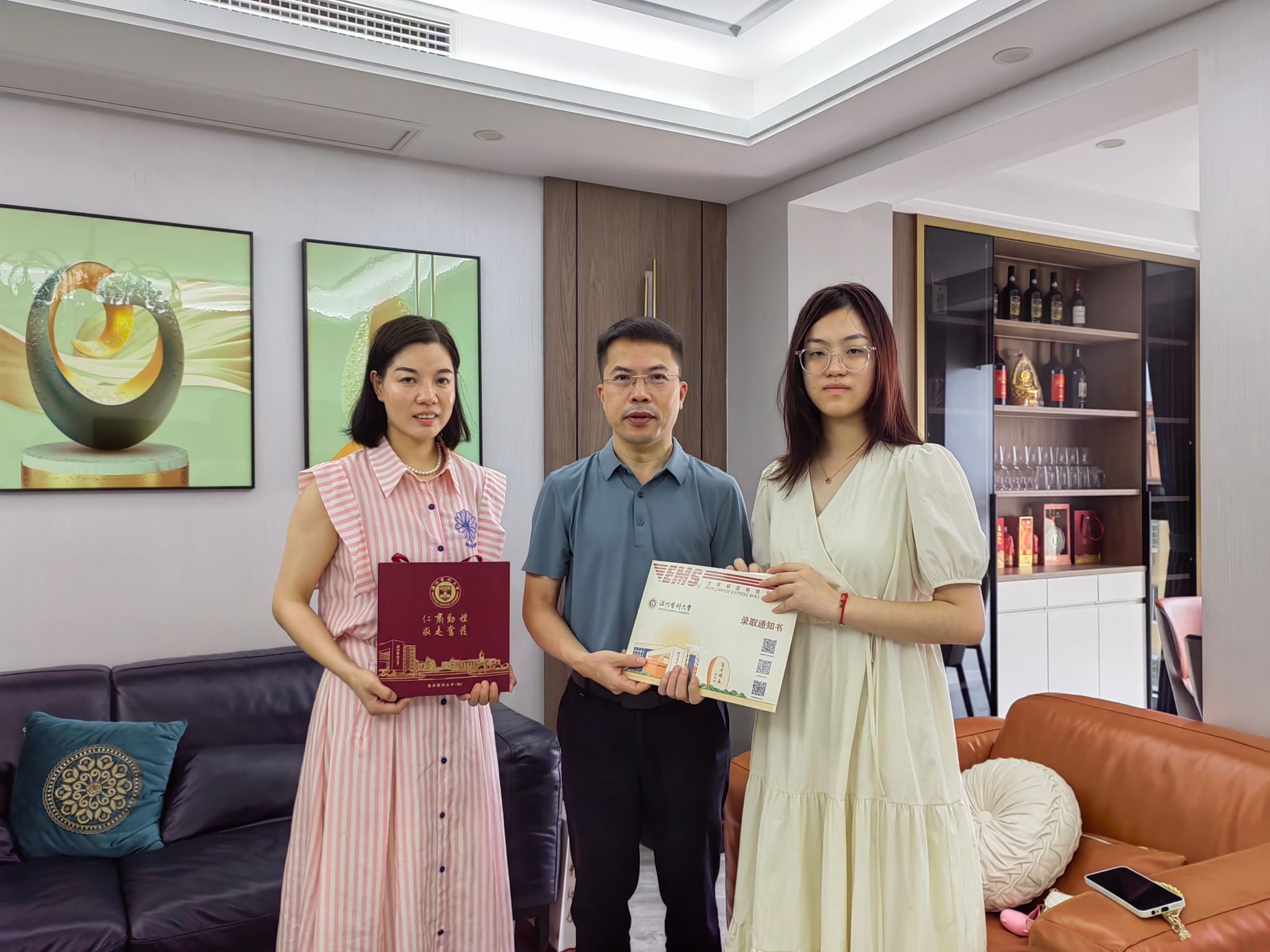 骄阳似火,璀璨而热烈。7月28日上午,快猫 院长蔡福满前往温州龙港,化身“快递员”亲自将2024年第一份录取通知书送到2024级助产学新生金津手中,学院社区护理教研室副主任(主持工作)谢小鸽陪同。