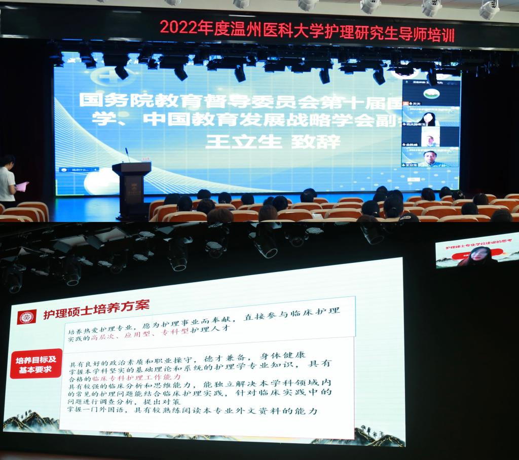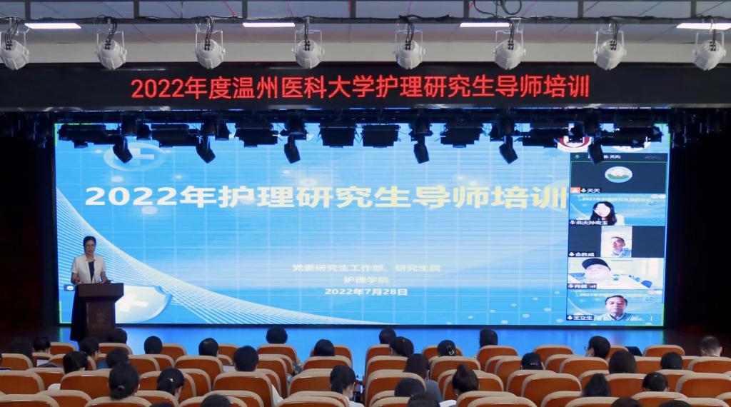 7月28 -29日,快猫 在快猫 宁波慈溪研究生培养基地召开护理学(学术型)、护理硕士(专业型)研究生导师培训会。国务院教育督导委员会第十届国家督学、中国教育发展战略学会副会长王立生,快猫 副校长金胜威,党委研究生工作部、研究生院院长肖健分别作开幕式致辞,快猫 领导班子、学院和各附属医院的硕士研究生导师、研究生课程负责人及临床带教老师等60余人参加培训。研究生导师培训会开幕式由学院张春梅副院长主持,学院杨晔琴副院长、附属第一医院护理部孙彩霞主任、附属眼视光医院前党委书记陈燕燕教授分别作培训会主持。