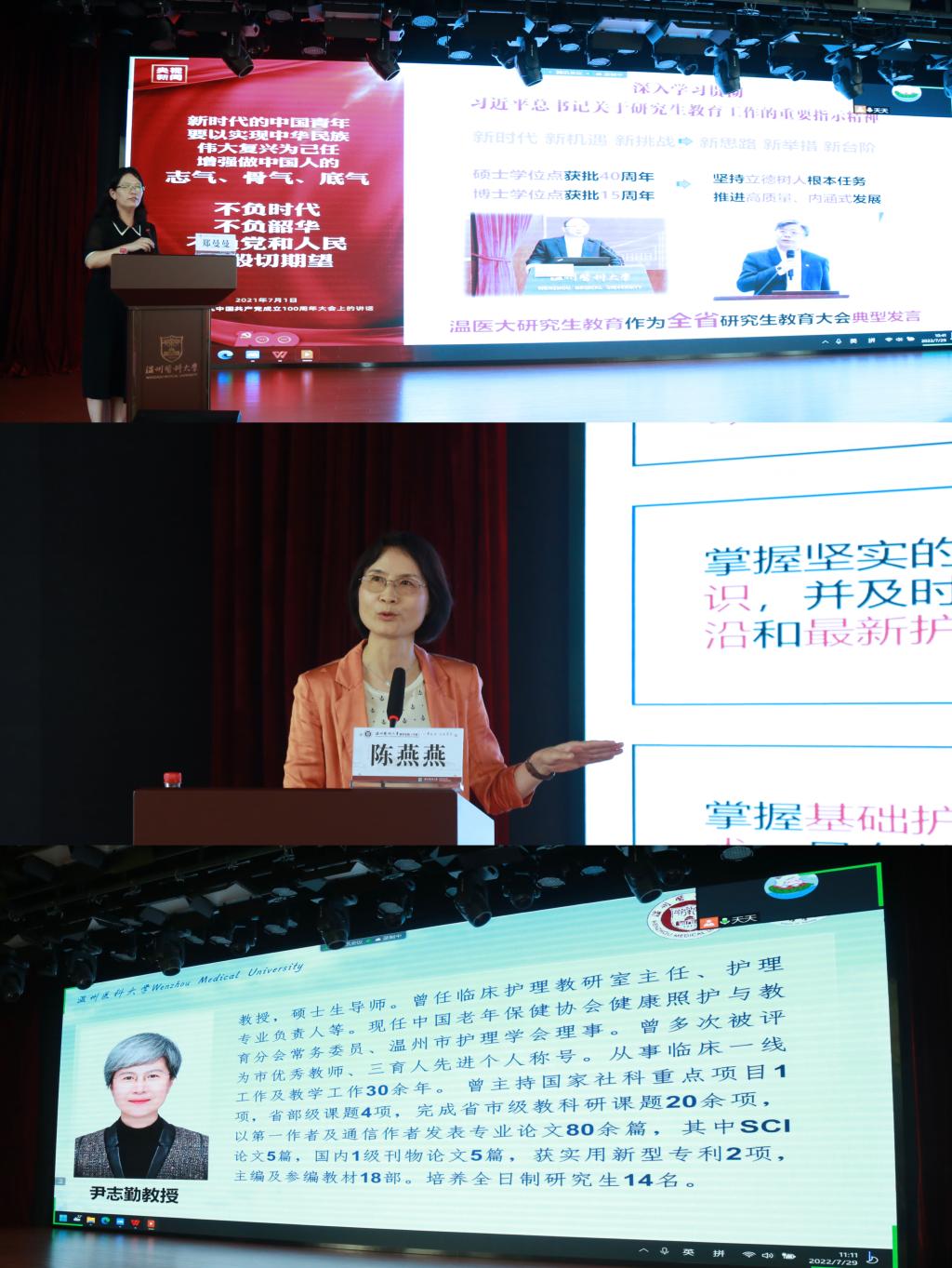 研究生院郑曼曼副院长介绍了当前研究生教育工作面临的形势与任务、“双一流”建设与研究生教育工作现状,并对我校研究生导师队伍建设提出了基本要求。陈燕燕教授和尹志勤教授分享了多年来指导护理硕士研究生的经验。