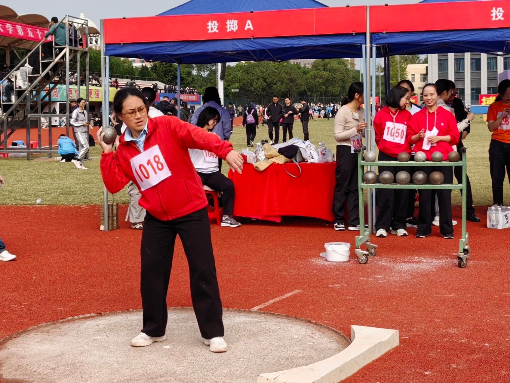 田赛项目中,快猫 温利燕老师,在教乙青年女子铅球决赛中获得第8名。快猫 学子不负众望。在学生女子标枪决赛中,快猫 金雨舒获得第五名;章雨欣在学生女子三级跳中获得第六名;董乐在学生女子跳高项目中获得第七名。