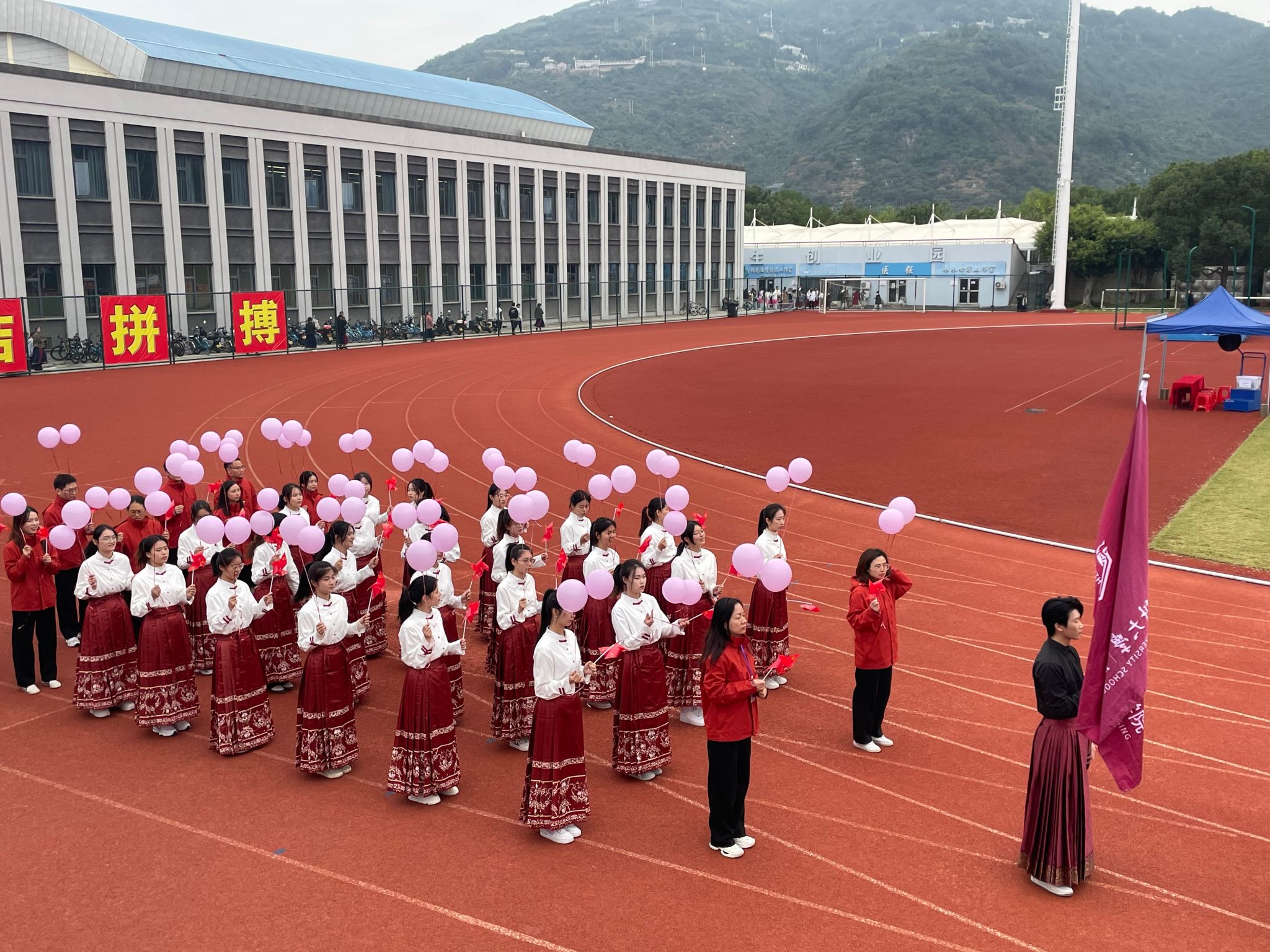 快猫 师生方阵队高举旗帜