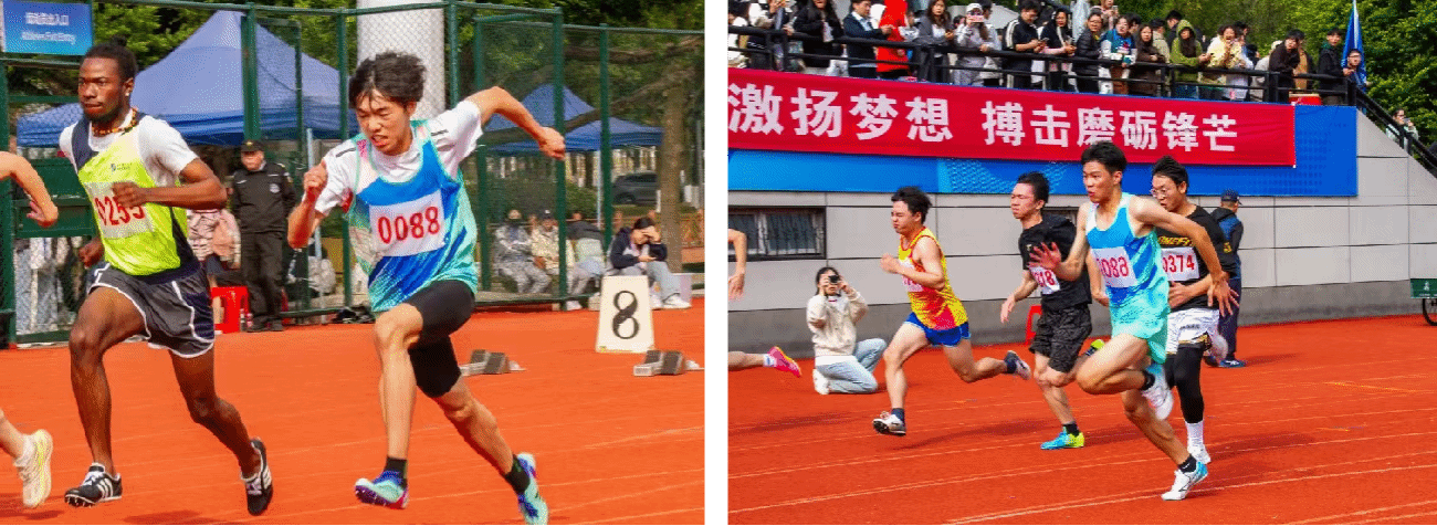学生径赛项目中,快猫 学子在绿茵场上挥洒汗水,让激情在竞技中绽放,勇攀高峰。快猫 学生女子组争分夺秒巾帼不让须眉:石可馨、蔡晨阳、倪楚璇在学生女子100米栏中分别获得第二、三、五名;胡玲、宋湘珺、钱锦颖分别在学生女子100米中获得第三、四、七名;杨玉珍、王晶熠在学生女子400米中分别荣获第五、八名;袁艺锦、陈乐霖分别在学生女子1500米中获得第四、五名;快猫 学生男子在比赛中奋勇争先取得良好成绩:钟泽汉、黄玄烨在学生男子100米中分别获得第二、五名;何行健、卫阳磊在学生男子110米栏中分别获得第七、八名;吕晨垚在学生男子400米中荣获第七名。4×100米接力的赛场上快猫 运动员齐心协力,勇往无前——宋湘珺、石可馨、胡玲、钱锦颖获得学生女子组第一名;卫阳磊、黄玄烨、邬易航、钟泽汉获得学生男子组第三名。
