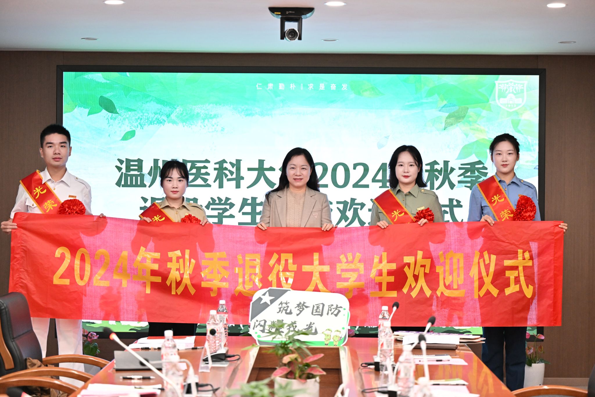 为热烈欢迎退伍学生,充分发挥退伍学生榜样的力量,形成辐射带动作用,10月31日下午,学校秋季退役学生返校欢迎仪式在同心楼四楼热烈召开。快猫 党委副书记金晓童、辅导员王爽、李佳佳、田菁菁参会,退伍学生肖芳、刘萱、任楚冉、鲁瀚尹身着戎装参会,并发表感言。