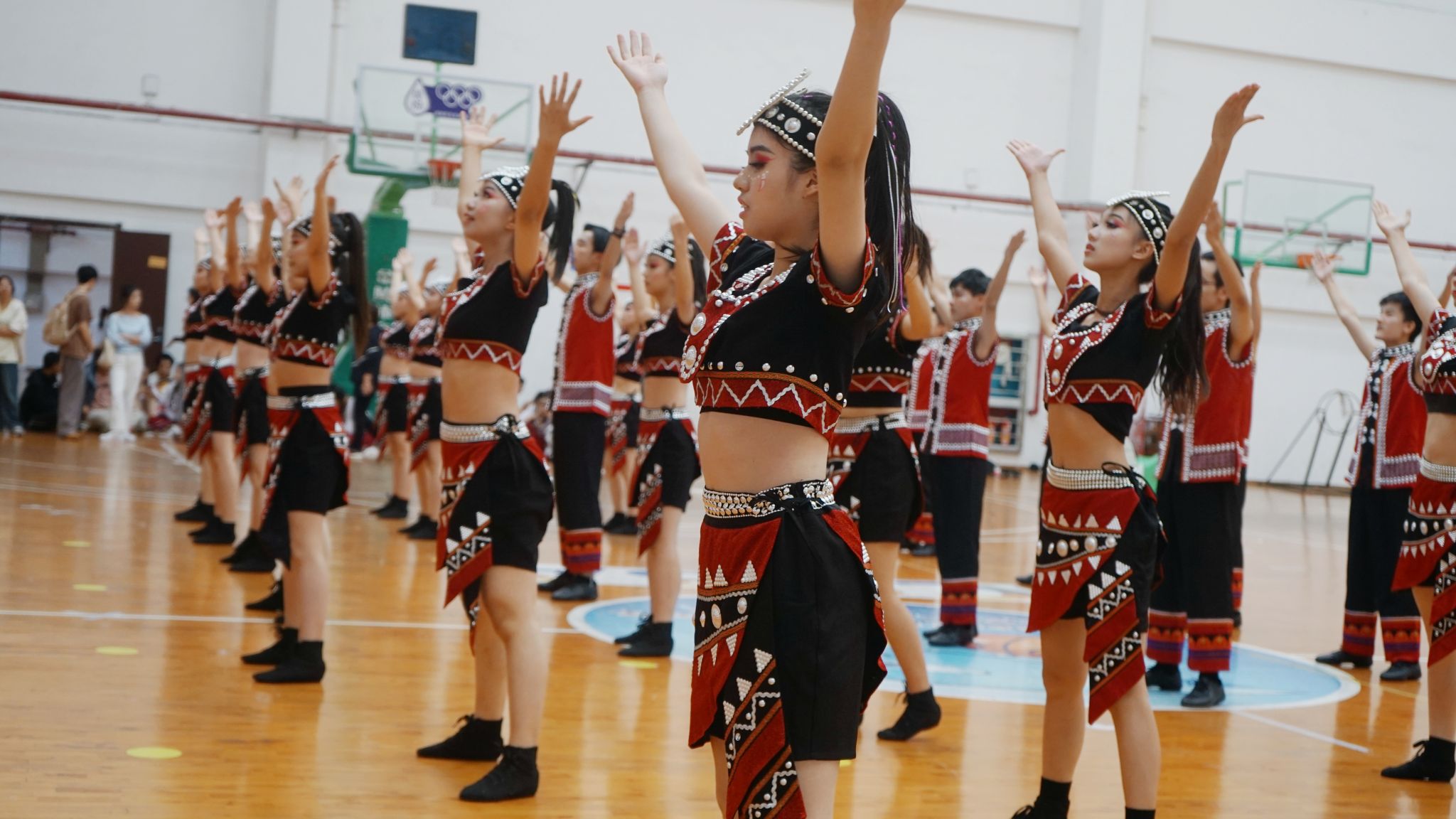 比赛现场,同学们如同秋日里的精灵,身着绚彩服装,脸上洋溢着自信与笑容,配合默契,身姿优美。他们时而跳跃、时而旋转, 节奏把握准确,动作整齐划一。