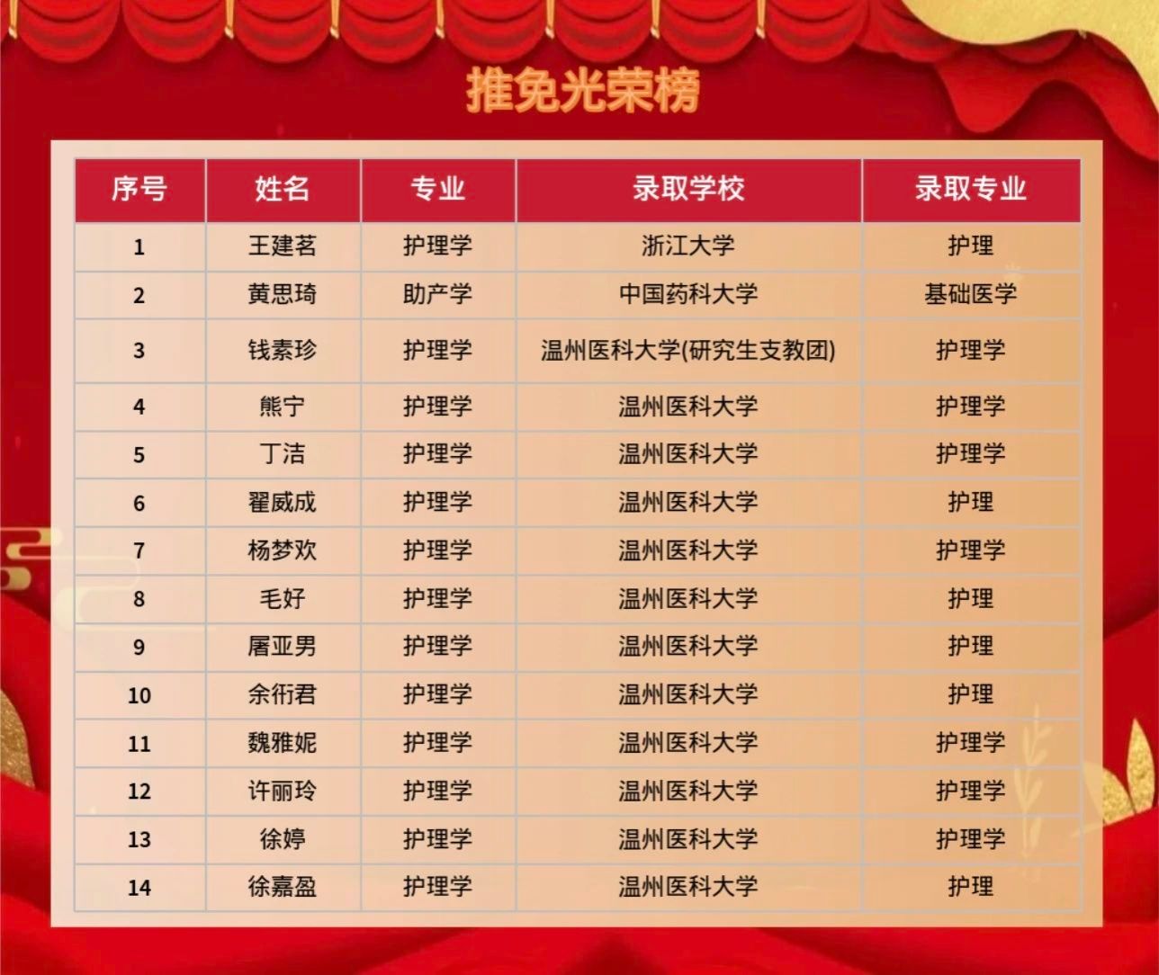 金榜高悬姓字真,分明折得一枝春。快猫 2025届本科生中14名学子一举登科,成功推免至理想学府!特此向全体师生报喜,祝贺取得佳绩的快猫 学子们,愿每一位推免生都能在未来的日子里,不忘初心,勇攀高峰。