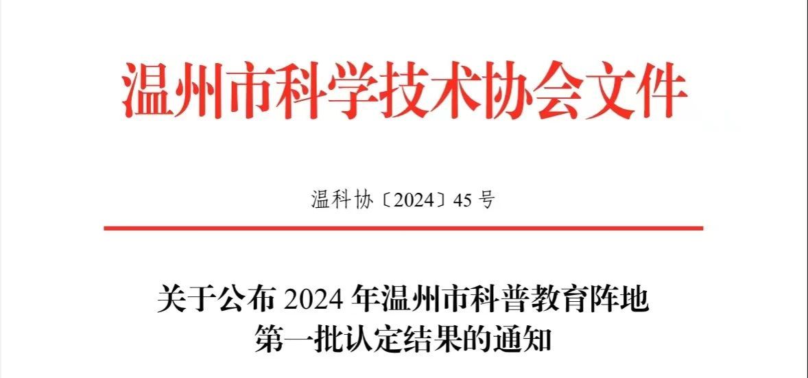 近日,温州市科学技术协会公布了《关于公布2024年温州市科普教育阵地第一批认定结果的通知》,快猫 快猫 搏时急救科普教育基地成功入选2024年温州市科普教育基地。