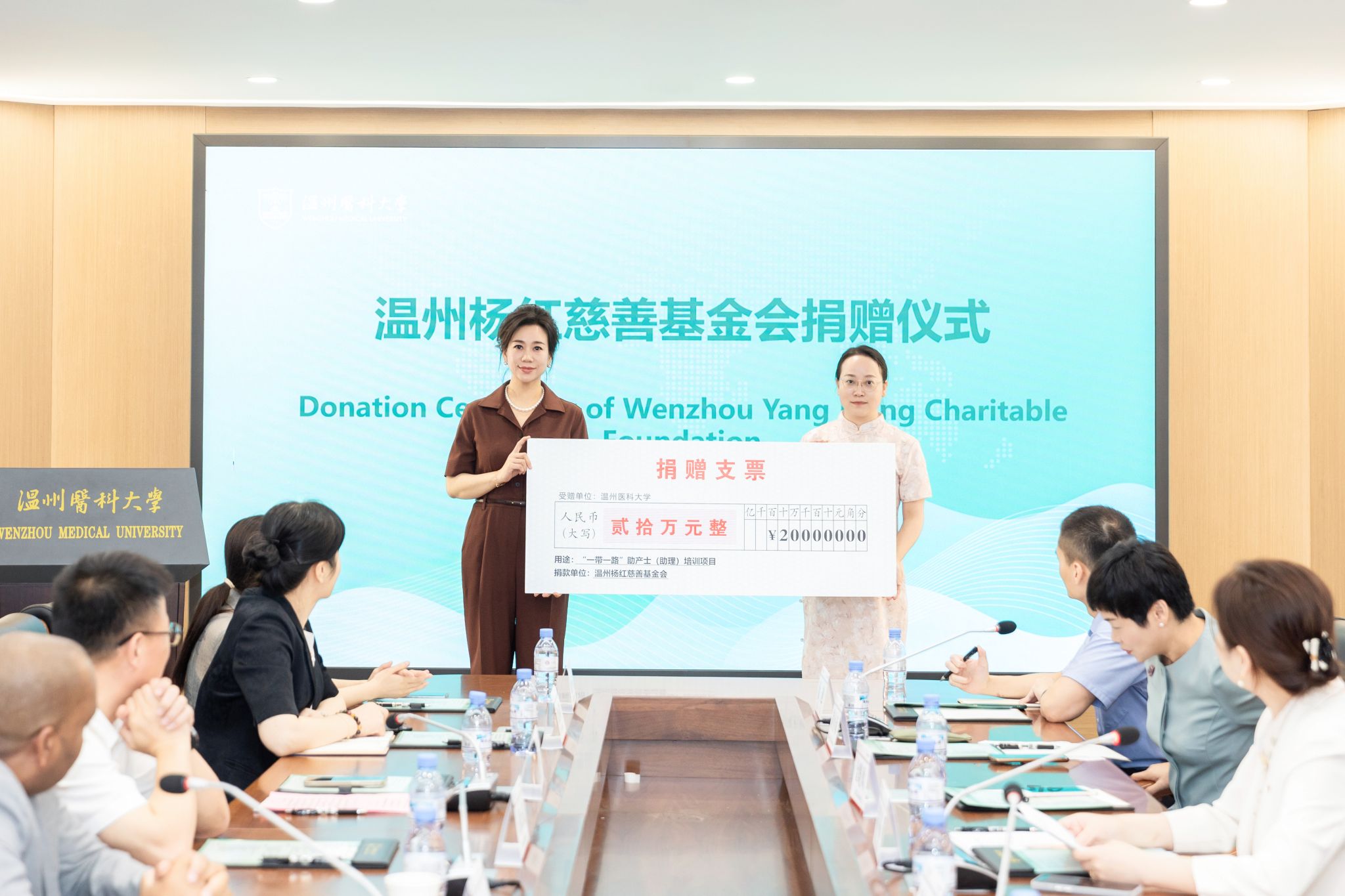 会上,温州杨红慈善基金会杨红理事长针对本次项目进行了专题捐赠仪式。校党委委员、宣传部(教师工作部)李军红部长代表学校为杨红慈善基金会颁发了荣誉证书。