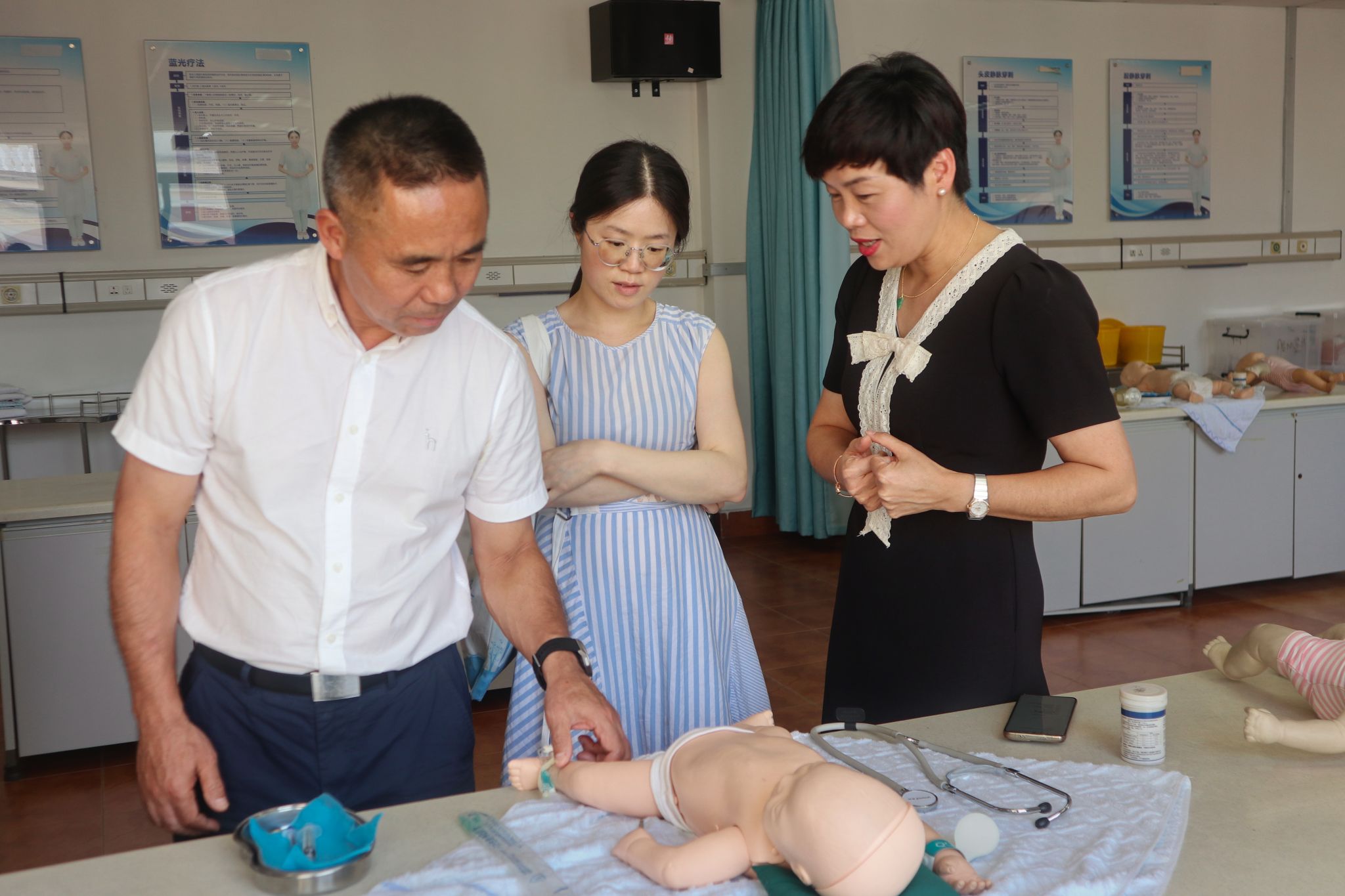 在学院领导的陪同下,温州市科学技术协会一行首先进行了实地考察,深入了解快猫 多个护理技能实验室及基地实践活动开展情况。