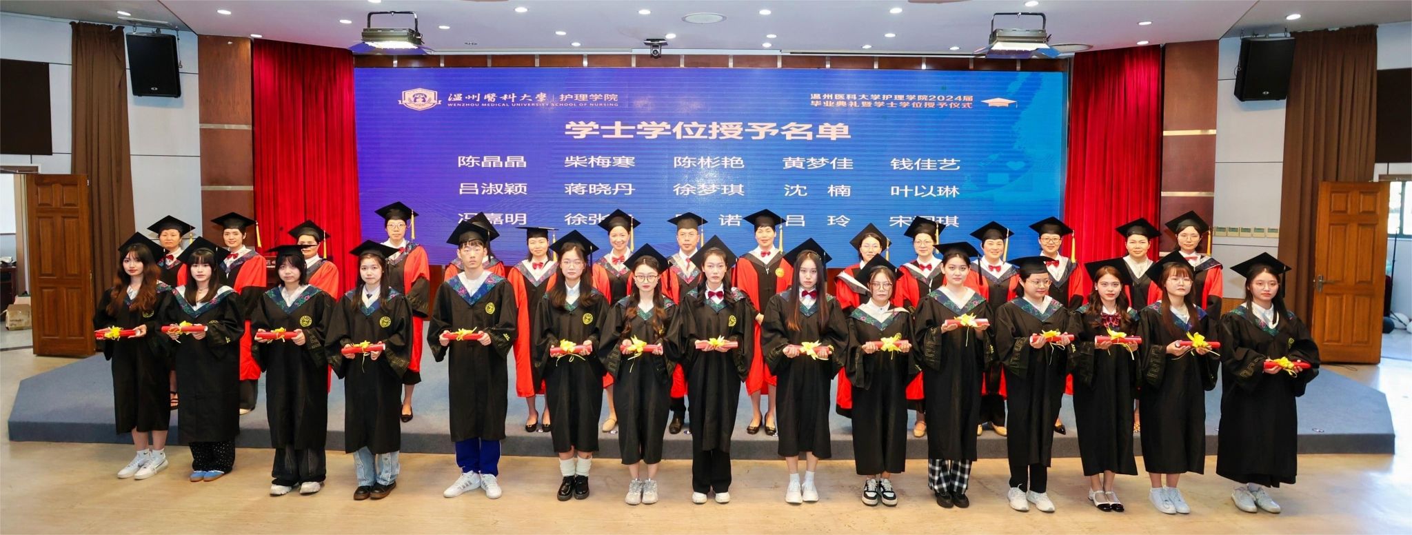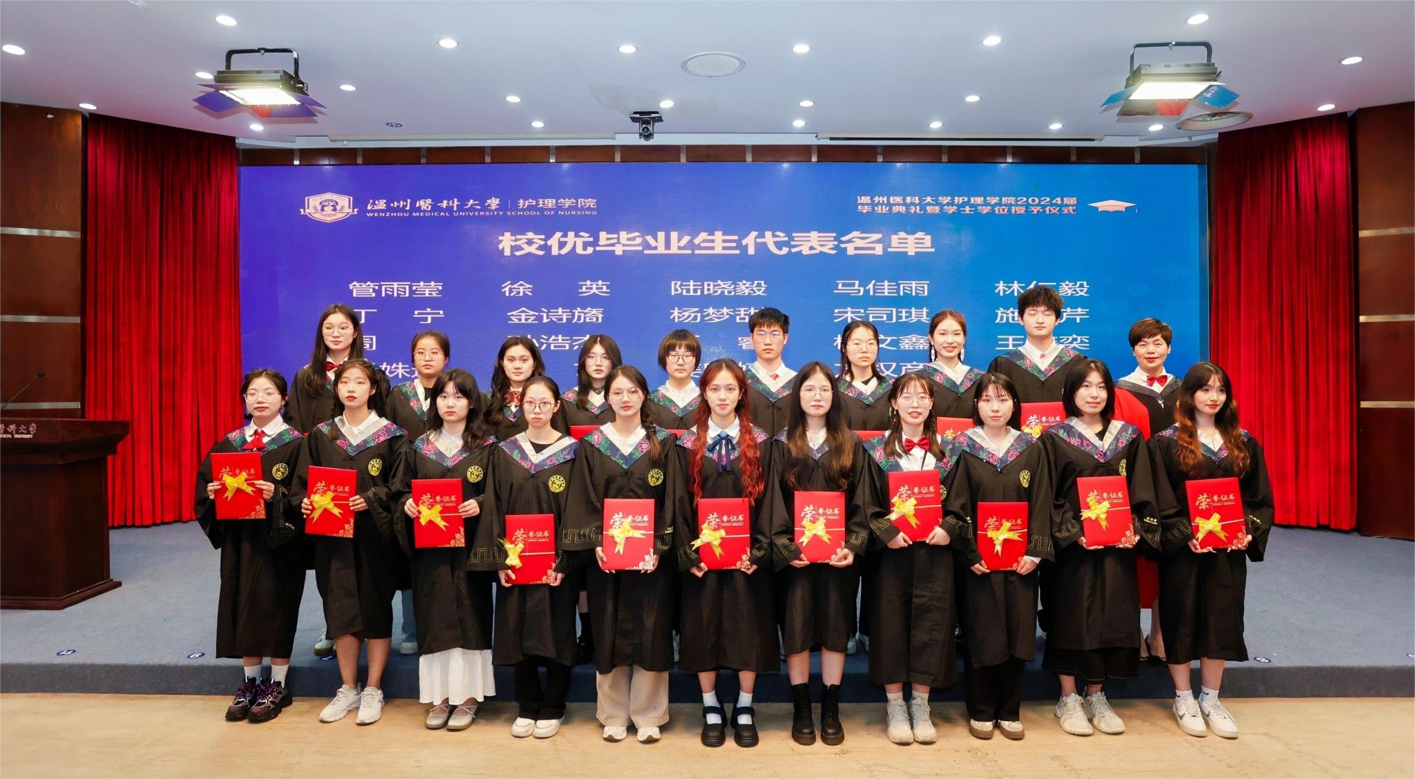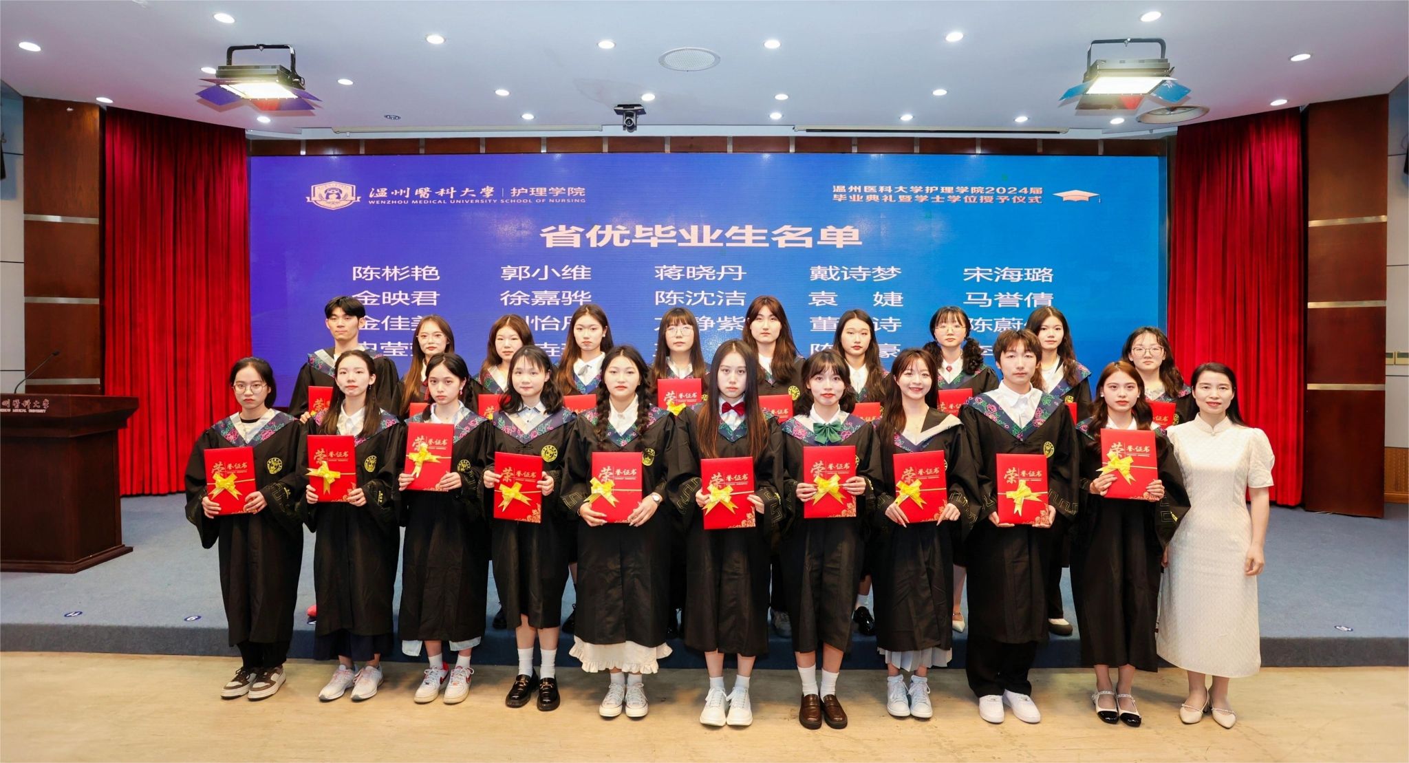2024届本专科毕业生中有20位学子获浙江省优秀毕业生称号,85位学子获快猫 优秀毕业生称号,35位同学成功考取研究生。其中20护本7班蒋泽凯同学成功考取浙江大学护理学专业研究生;20护本6班袁婕同学荣获校“十佳大学生”荣誉称号,同时她也在第十八届“挑战杯”全国大学生课外学术科技作品竞赛获一等奖;21护专金雨欣同学在全国大学生田径锦标赛女子铅球项目中取得第八名好成绩,刷新我校田径历史;20护本1班团支部成功入选浙江省高校“活力团支部”,多位毕业生在核心期刊及以上杂志发表论文或在各类创新创业大赛中获得佳绩。