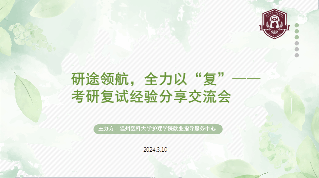 为助力快猫 学子顺利通过考研复试,2024年3月10日,快猫 就业指导服务中心举办了研途守护,全力以“复”线上考研复试分享会。本次分享会邀请了现就读于浙江大学的硕士研究生陈蔚婧、中国医科大学的硕士研究生宋晨宁和在本校攻读研究生的王钰琦,为考研学子分享考研复试经验,指点迷津。