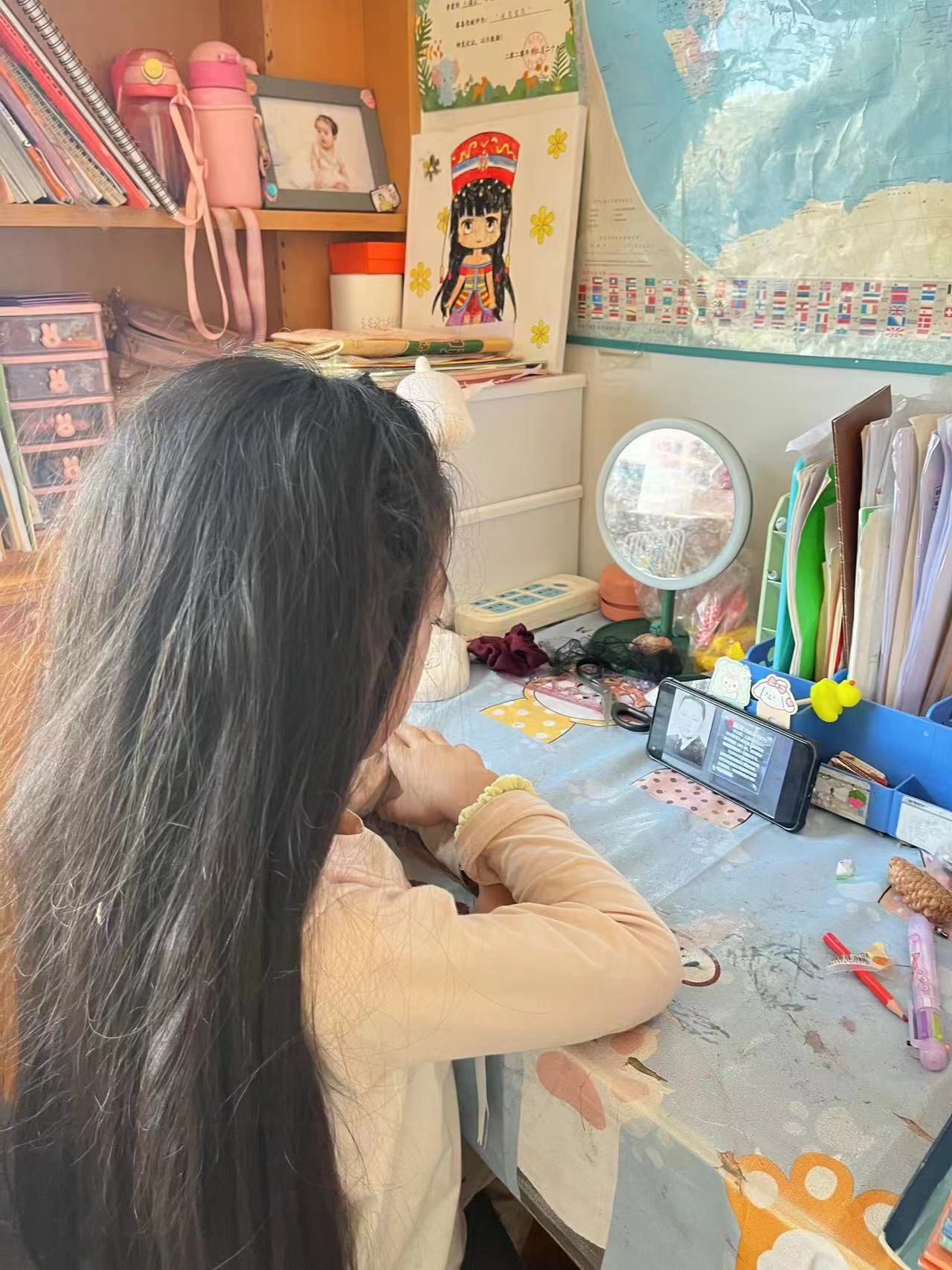 在云支教活动结束以后,潘芸菲因小朋友的一句“老师,你会来青海吗?我想见到你。”便起身前往青海,到小朋友家里进行了家访,进行了一次面对面的授课。在这之前,她给小朋友写去一封信件。信里分享了支教点滴,及对小朋友的肯定与鼓舞。“老师!我好想你啊!我终于见到你了”,小朋友一见面便飞扑了上来,旅程的疲惫在这一刻一扫而光。“来到青海实地,亲眼见到他们,这种感觉很奇妙”,潘芸菲与我们分享道。这趟行程对她来说是新的体验,也是新的收获,孩子们稚嫩的笑脸,真挚的问候,无一不让她感动。