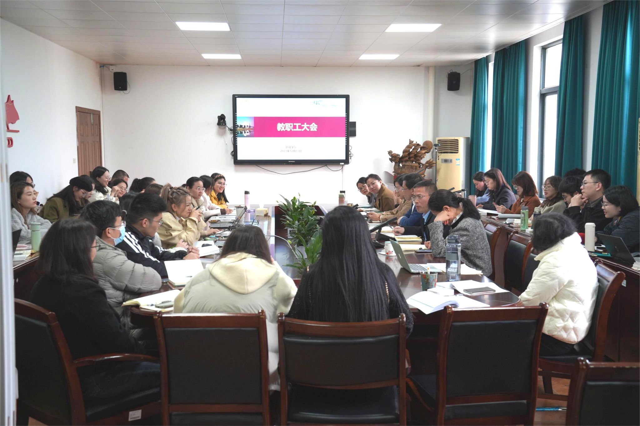 12月13日下午,学院在7C306会议室召开教职工大会,党委书记李旭东讲话,院长蔡福满主持会议。