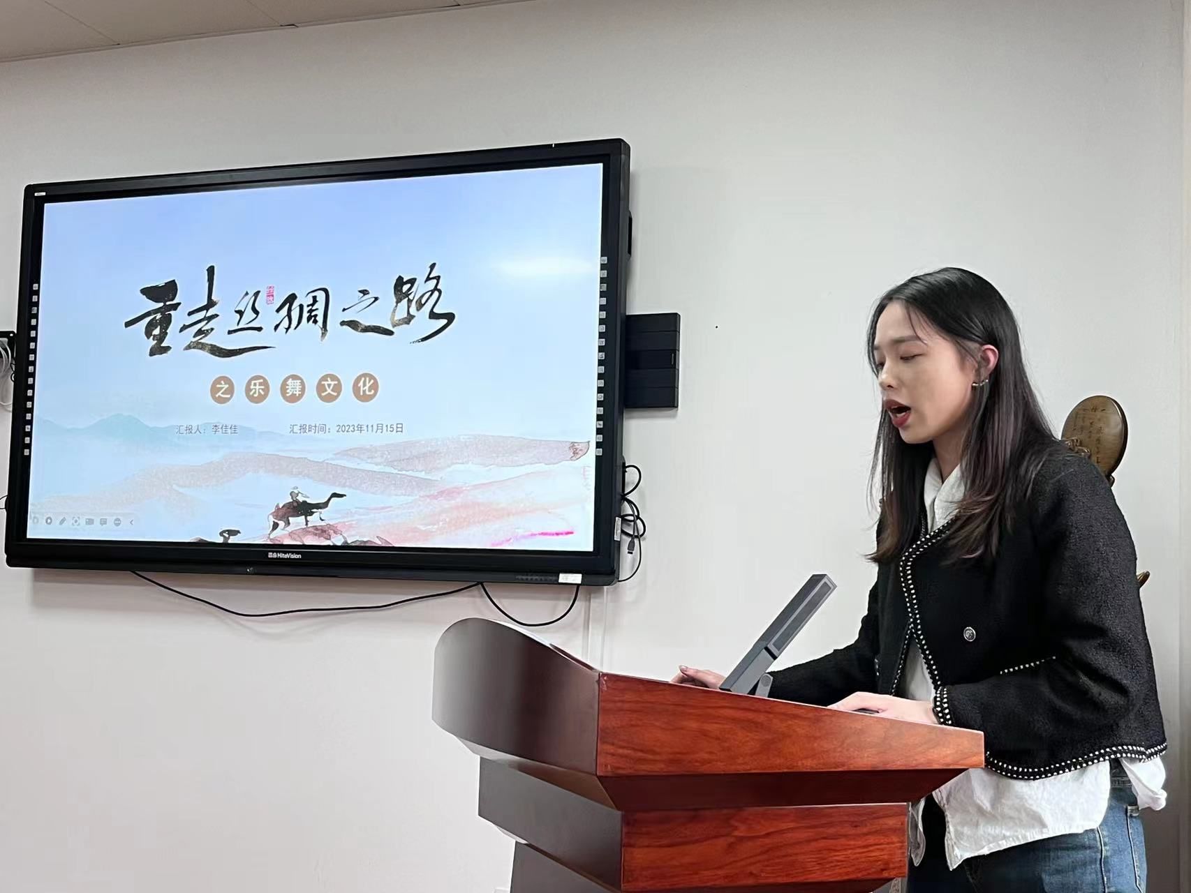 首先,李佳佳老师以《重走丝绸之路之乐舞文化》为题,带领大家领略了丝绸之路乐舞文化的流变沿革和独特魅力。她通过细致入微的研究和生动有趣的讲述,让在场师生对丝绸之路乐舞文化的历史价值有了更深入的认识。拓宽大家对不同文明之间交流与融合的认识,帮助提供全新视角来看待生命和世界。