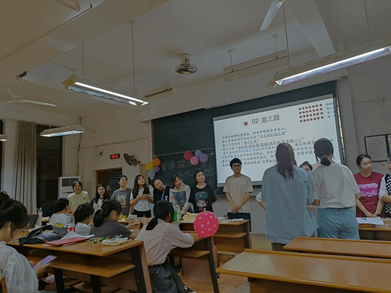 随后班委名单公布,在大家热烈的掌声中,活动进入下一环节:破冰游戏——每个游戏都会计算每组的游戏得分,三场比赛结束后统计每组最终得分,公布排名并颁发奖品。大家都十分积极地参与“拼字游戏”“逛三园”“你画我猜”这三项游戏,教室中洋溢着热情,每个人为自己的队伍争分夺冠的同时也释放了压力,放松了心情。
