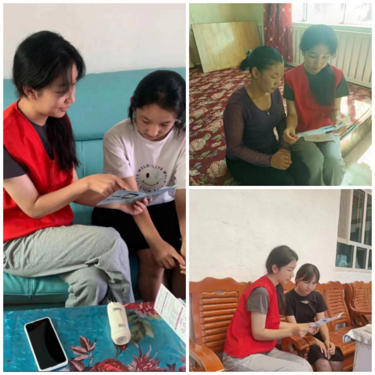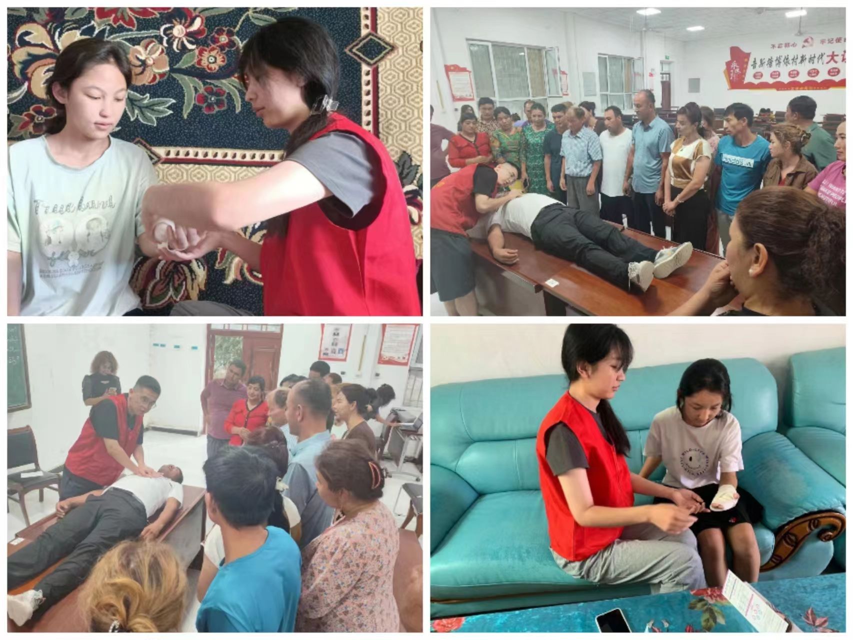 “民族一家亲,急救藏疆行”暑期社会实践团的五位成员分别赴南北疆各地区乡镇农村,给当地的居民做急救知识宣传活动。实践团成员分到了几个不同的乡镇,每个人都在各自所在的乡镇里通过耐心地讲解和指导,把知识教授给群众。