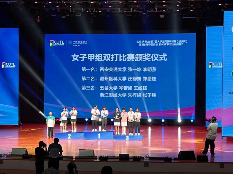 2023年8月9日至16日,快猫 郑恩婕同学(校网球队队员)参加由中国大学生体育协会主办的第26届中国大学生网球锦标赛(总决赛)中,不畏艰苦,顽强拼搏,敢拼敢打,一路过关斩将,在连续战胜北京大学、云南财经大学、四川大学后进入四强,决赛中惜败实力强劲的西安交大,获得本届总决赛女子双打亚军。