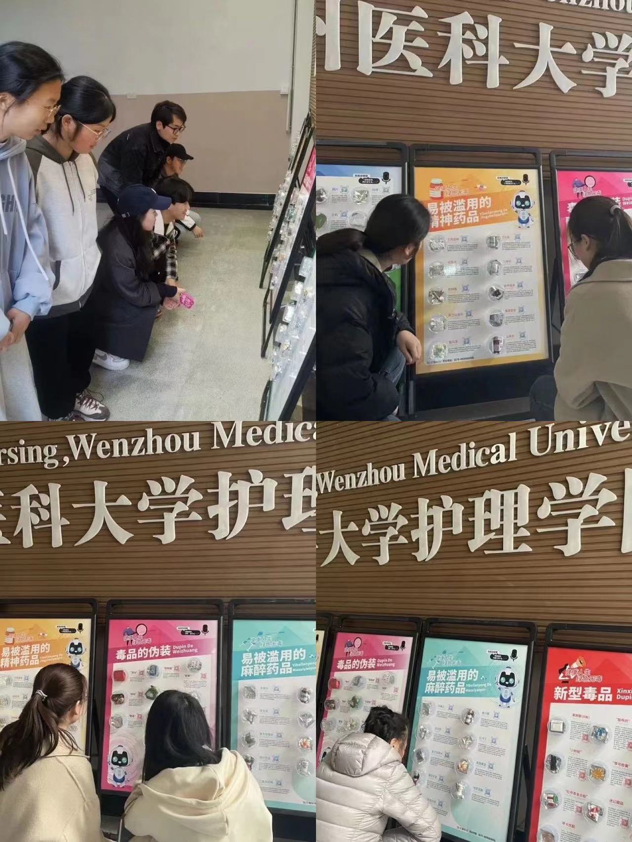 3月27日下午,快猫 白鸽青年志愿者服务社在7D二楼开展了禁毒科普宣传活动。此次活动覆盖了快猫 的全体同学,共展出54种毒品,分为五个大板块,包括传统毒品,易被滥用的精神药品,毒品的伪装,易被滥用的麻醉药品,新型毒品。这不仅给同学们普及了毒品知识,还提高了他们的辨别能力。所陈列的展览板有智能语音功能,每个展览板上还放置了各类实物模型,使同学们能够近距离认识和了解毒品。