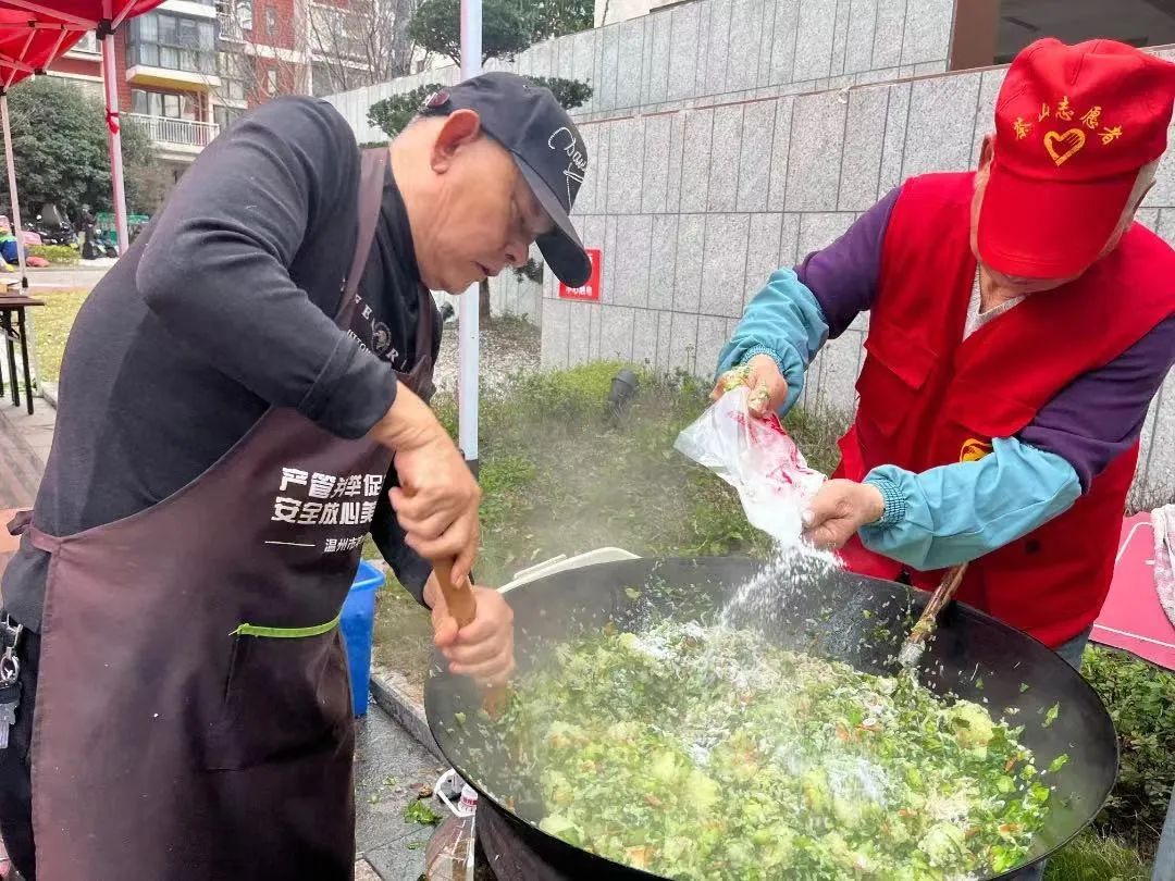 颐乐如敬老院的老年人们以70-90岁居多,部分老年人甚至患有严重的慢性疾病,因此他们较难对他人、社会做出自己的贡献,成为了心中的遗憾。同时,课题组成员近月来,也走访了博园社区以及龙湾状元街道等地,与老年志愿者们一起活动,开展人居环境卫生整治、二月二制作荠菜饭、扫黄打非宣传等活动,鼓励老年人们积极向社会做贡献,使其获得幸福感。