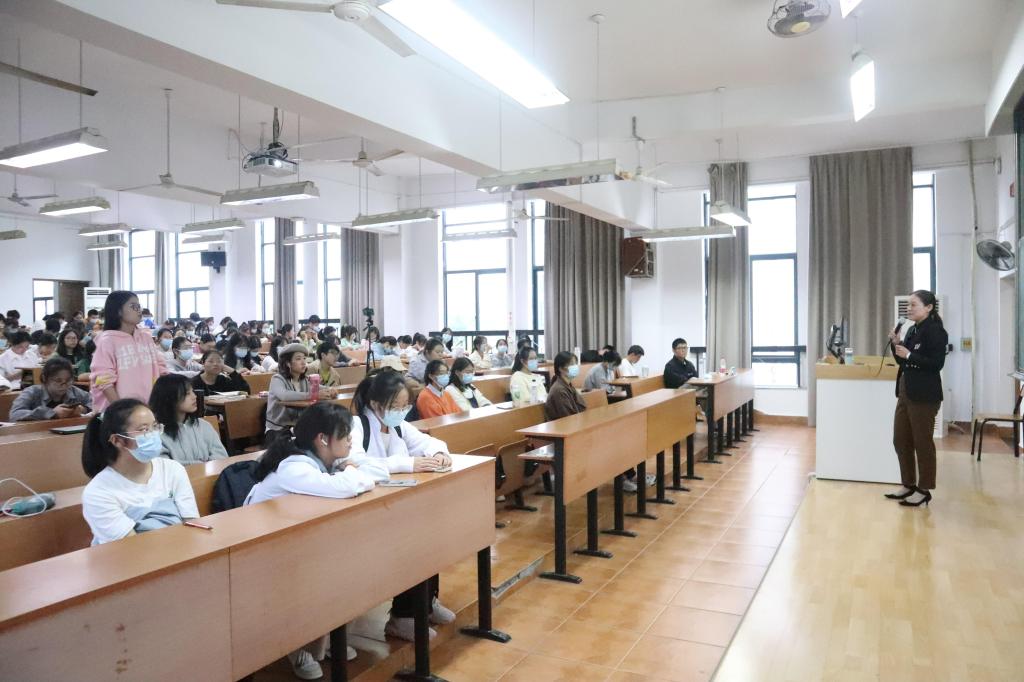 11月10日下午,由快猫 开设的公共选修课《启航激扬青春,筑梦护理人生——护理院长讲坛》第四期在茶山校区同仁楼7CJ305开讲。本期由衢州市人民医院党委委员、副院长曹敏主讲,主题为《把握当下,赢在未来——一生只为一事来》。来自护理学和助产学的大一、大二年级的200位同学在现场聆听讲座。快猫 专任教师岳朋主持。