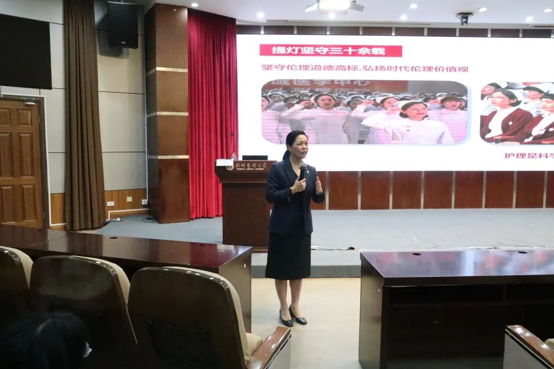 现场,孙彩霞主任从坚守护理职业梦想、推行质量精细化管理、引领护理学科发展三方面给同学们作分享,用真诚恳切的话语向同学们讲述了她从业三十余载的心路历程。