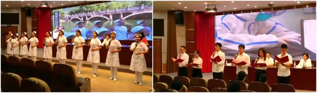 “新时代的护理人,我们的热爱要大声说出来”师生合作展示出铿锵有力的朗诵节目《与时代同行》。“中国护士,大爱无疆,用奉献浇灌生命,让生命永远绽放;中国护士,大爱无疆,用生命守护生命,让真情地久天长……”全体学院师生共同唱出心中梦想,激励自己向着光辉的目标齐头并进,典礼在悠扬动听的《中国护士之歌》中结束。开学典礼上,那一身身洁白无瑕的护士服,一双双坚毅清澈的眼睛都仿佛在昭示着对护理专业的无限期许。祝愿2022级全体同学都能传承弘扬南丁格尔精神,不忘敬佑生命、救死扶伤的初心和使命,踏实耕耘,为祖国医药卫生健康事业贡献出一份自己的力量!