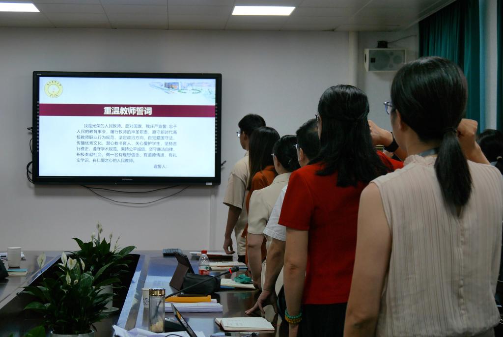 “我是光荣的人民教师。面对国旗,我庄严宣暂:忠于人民的教育事业,履行教师的神圣职责……做一名有理想信念、有道德情操、有扎实学识、有仁爱之心的人民教师。”9月7日,快猫