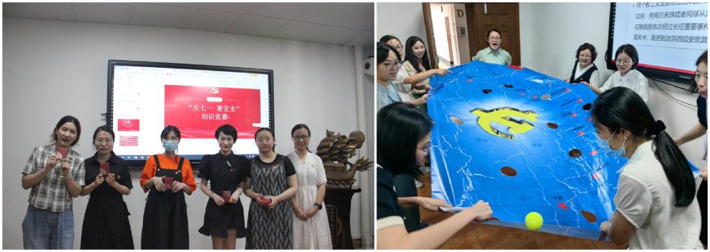此外,现场还组织了“庆七一,赛党史”知识竞赛,营造浓厚的党史知识学习氛围。现场气氛热烈,老师们踊跃举手抢答。展现了教职工积极向上的精神风貌,充分调动了老师们学习党史的积极性。接着现场还组织开展了“重走长征路”重温党史小游戏,重温革命先辈的丰功伟绩,体验永不言败的革命精神,传承团结奋进的红色文化。