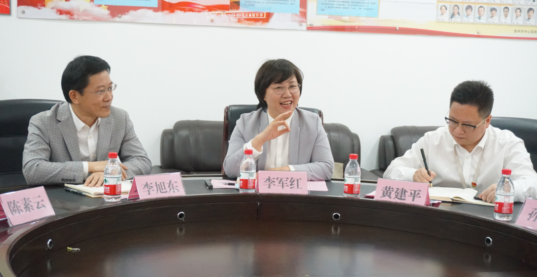 座谈会上,温州市中心医院党委书记黄建平、院长孙军对我校党委委员、宣传部部长李军红一行的到来表示热烈欢迎,对近年来快猫 对温州市中心医院发展给予的鼎力支持表示感谢。