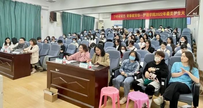 2022年4月27日,快猫 在7C302举办2022年最美护生大赛,学工办辅导员老师王茹新、陈圣乐、李飞跃、杜娅茹莅临现场,并担任本次活动的评委,快猫 学生会主席团的成员们、团委的学生干部和来自各个班级的心理委员作为大众评审也出席了本次活动。经过初赛、复赛和决赛,最终大赛选出了八位最美护生和八位最美护生候选人。