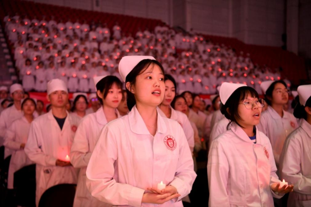 5月11日晚,学院第十六届护士文化节闭幕式暨授帽仪式举行。在舒缓的音乐中,877名护理专业学生有序依次上台、行礼,30名长期从事护理教学工作的专业教师和来自临床一线的护士一一为他们戴上了圣洁的燕尾帽和圆帽,2名老护理人为他们传递象征“燃烧自己,照亮别人”的蜡烛。现场,护生们还用歌咏的方式诠释爱国爱党情怀和护理精神,节目表演精彩纷呈。