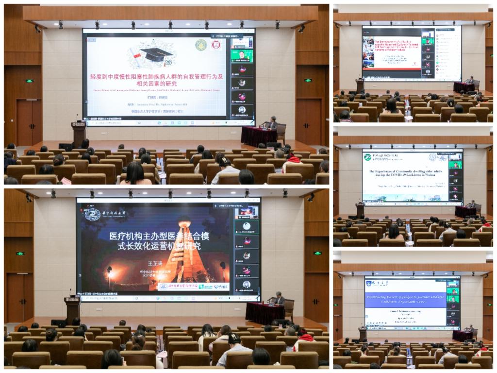 在老年护理专场,美国威斯康星大学麦迪逊分校博士研究生金园园分享了其针对中国心力衰竭患者自我管理的研究,泰国东方大学硕士研究生盛晓雯分享了其对慢行阻塞性肺疾病人群自我管理行为及相关因素的研究,华中科技⼤学硕士研究生杨清分享了她对新冠疫情封锁期武汉社区居住老年人体验的质性研究,华中科技⼤学硕士研究生王芷琦分享了她对医疗机构主办型医养结合模式长效化运营机制的研究,扬州⼤学硕士研究生毕雅昕分享了其研究的2型糖尿病患者疲劳因素的系统评价方式。