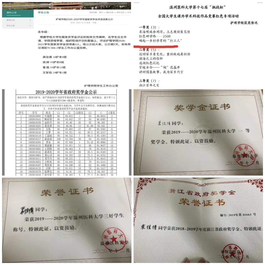 就读本科四年,她累计获得国家奖学金、省政府奖学金、校一等奖学金、校三好学生;快猫 第六届护理学科竞赛二等奖、第十七届“挑战杯”大学生课外学术科技作品竞赛红色专项活动校级三等奖等多项荣誉,是一名中共党员。她积极投身于学校、学院各类活动与竞赛,争做优秀温医追梦人。