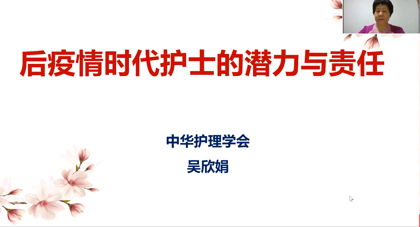 吴欣娟通过线上方式就“后疫情时代护士的潜力与责任”作主题演讲。她指出在后疫情时代,护士要发挥更大的价值和影响力,要优化护士工作范围,提升护理领导力,加强护理教育建设。她强调,新时代对护士提出了新要求、新任务,要在实现全民健康覆盖目标、增进人民健康与福祉、加强学科间合作等方面发挥重要作用。