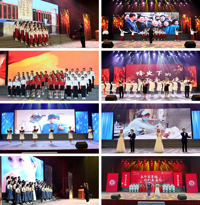 现场,护生们用歌咏的方式诠释爱国爱党情怀和护理精神,《东方红》《保卫黄河》《春天的故事》等熟悉的红歌旋律和《烽火下的白衣天使》《白衣执甲 时代英雄》等诗朗诵在观众耳边响起。