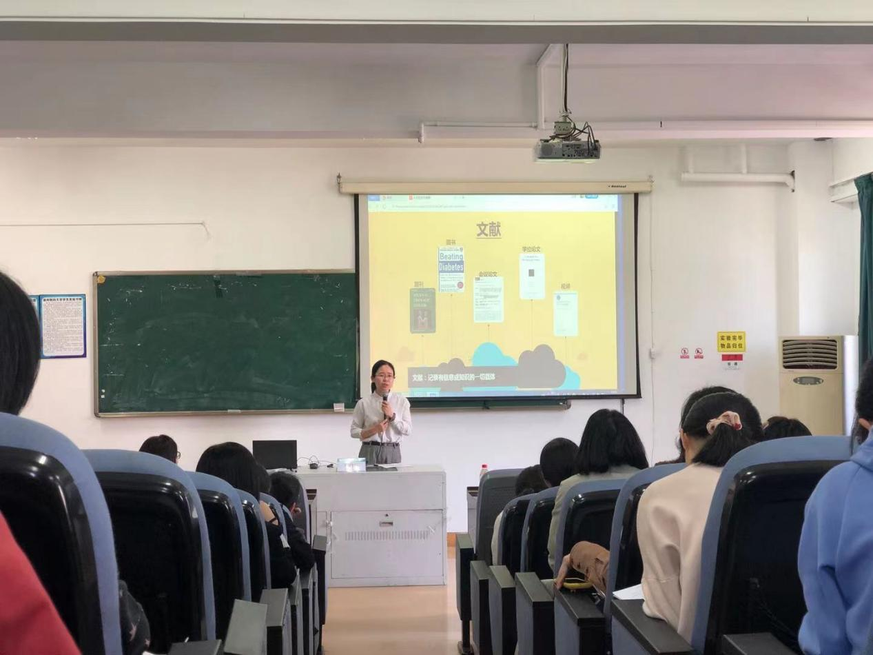 张以舒就“人文社科文献的查找”作主题演讲,她详细讲解了人文科学与社会科学的概念、研究对象及研究任务,由浅入深详尽地介绍如何快捷查找各地区文献,为教师和研究生快速准确地查找课题文献提供指导。研究生肖海哨和王雅雯分别就“文献检索与管理”和“SCI投稿及润色”两个主题做分享。