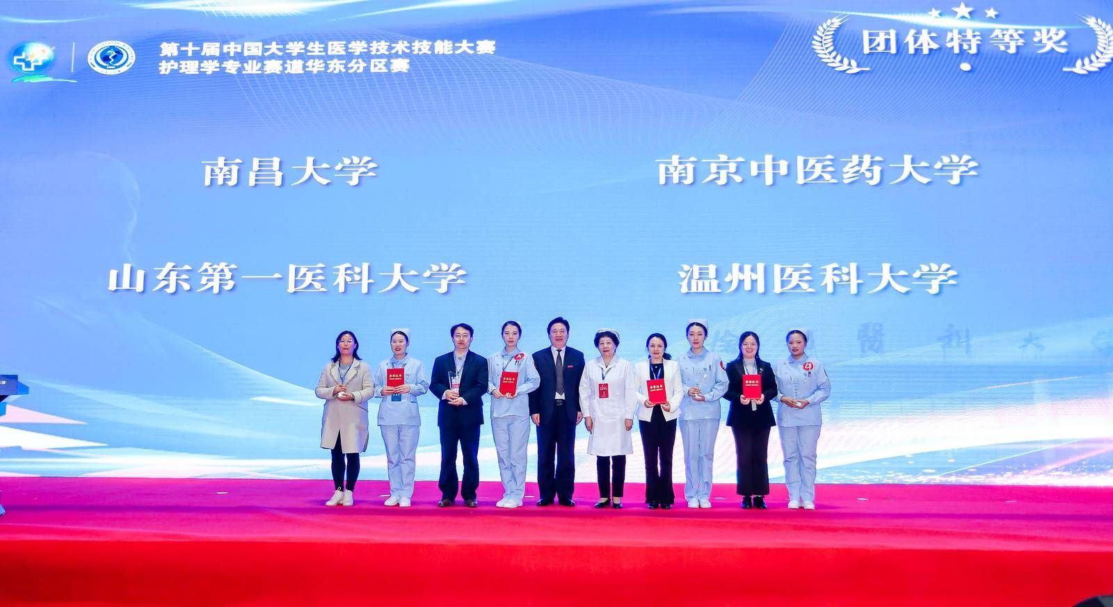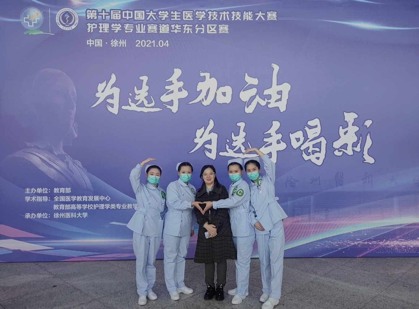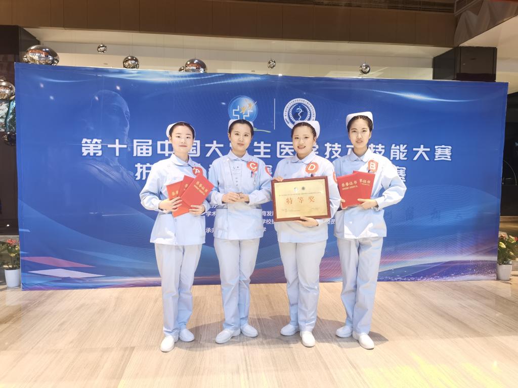 4月17-18日,由教育部主办、教育部高等学校护理学类专业教学指导委员会学术指导的第十届中国大学生医学技术技能大赛护理学专业赛道华东分区赛在徐州医科大学举办,共有6省1市62所护理本科院校参赛。快猫 张馨尹、潘艳艳、陈俊回、陈蕾蕾4名护生组成的代表队勇闯三关,夺得华东赛区特等奖,取得全国赛入场券,陈俊回和潘艳艳获得个人单项奖。