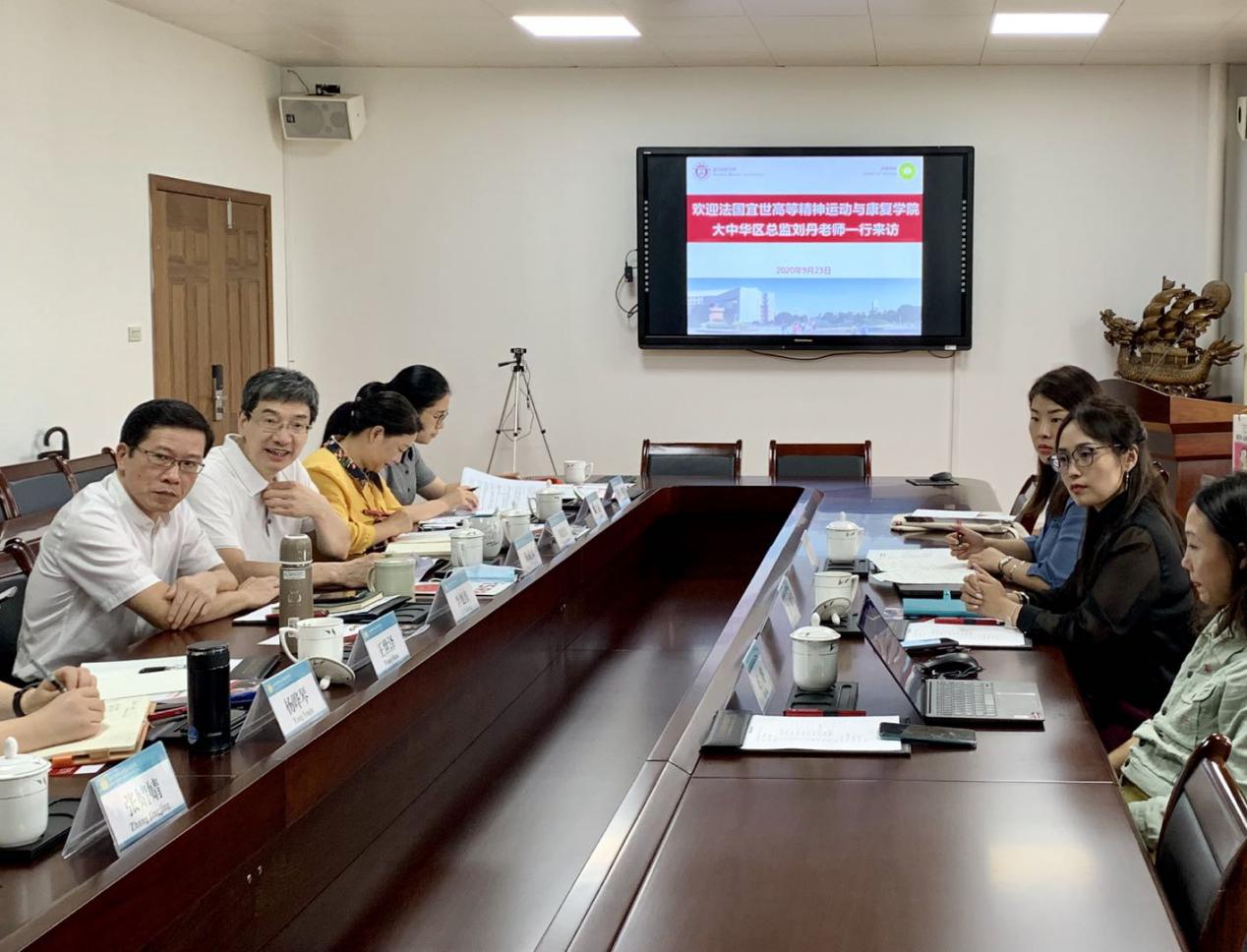 9月23日下午,法国宜世高等精神运动与康复学院大中华区总监刘丹一行来访护理学院。快猫 党委书记李旭东、院长陈成水、继续教育学院院长王世泽、快猫 党委副书记周恩红、副院长杨晔琴及相关科室教师、国际合作交流处相关人员等在7C306会议室与来访客人进行了交流。会议由杨晔琴副院长主持。