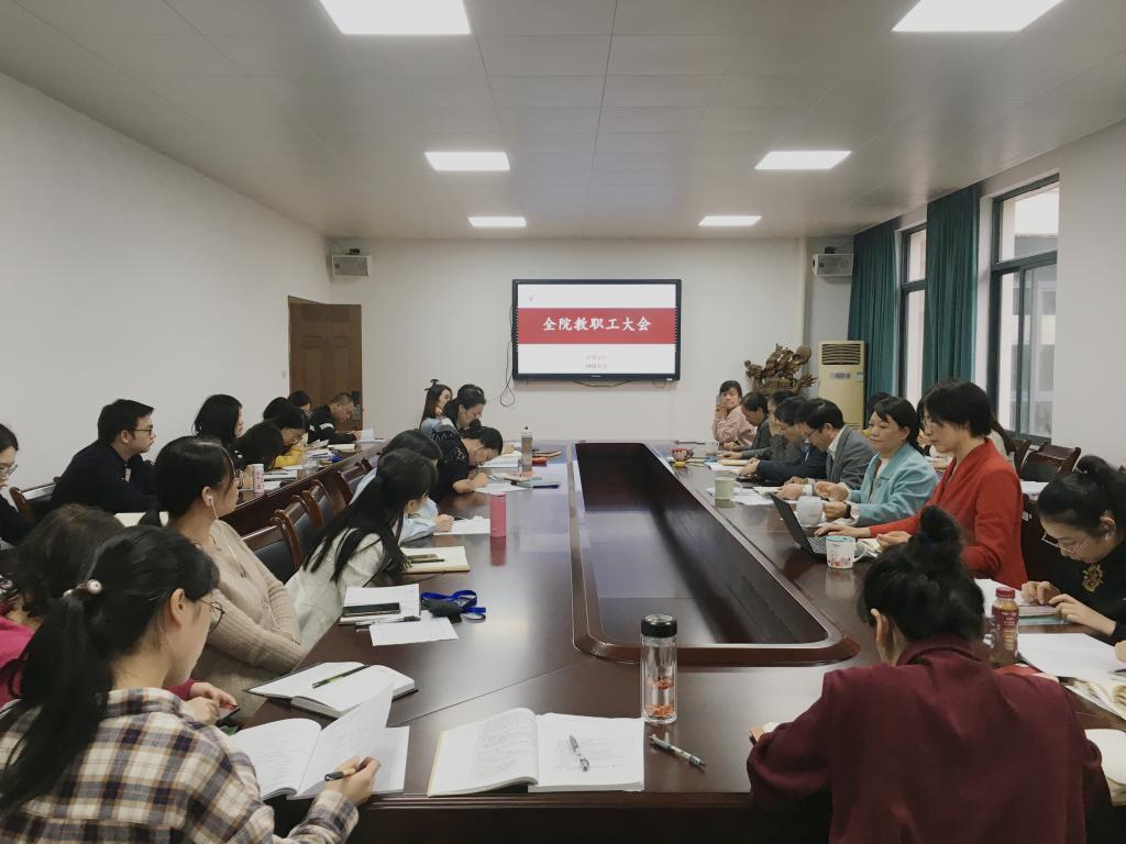 11月27日下午,学院在7C306会议室召开教职工大会,会议由院党委书记李旭东主持。
