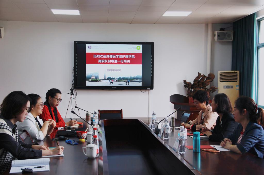 10月20日上午,成都医学院快猫 副院长何春渝一行来院访问,快猫 副院长杨晔琴、教学办主任孙海琴以及相关人员在7C306会议室接待了来访客人。
